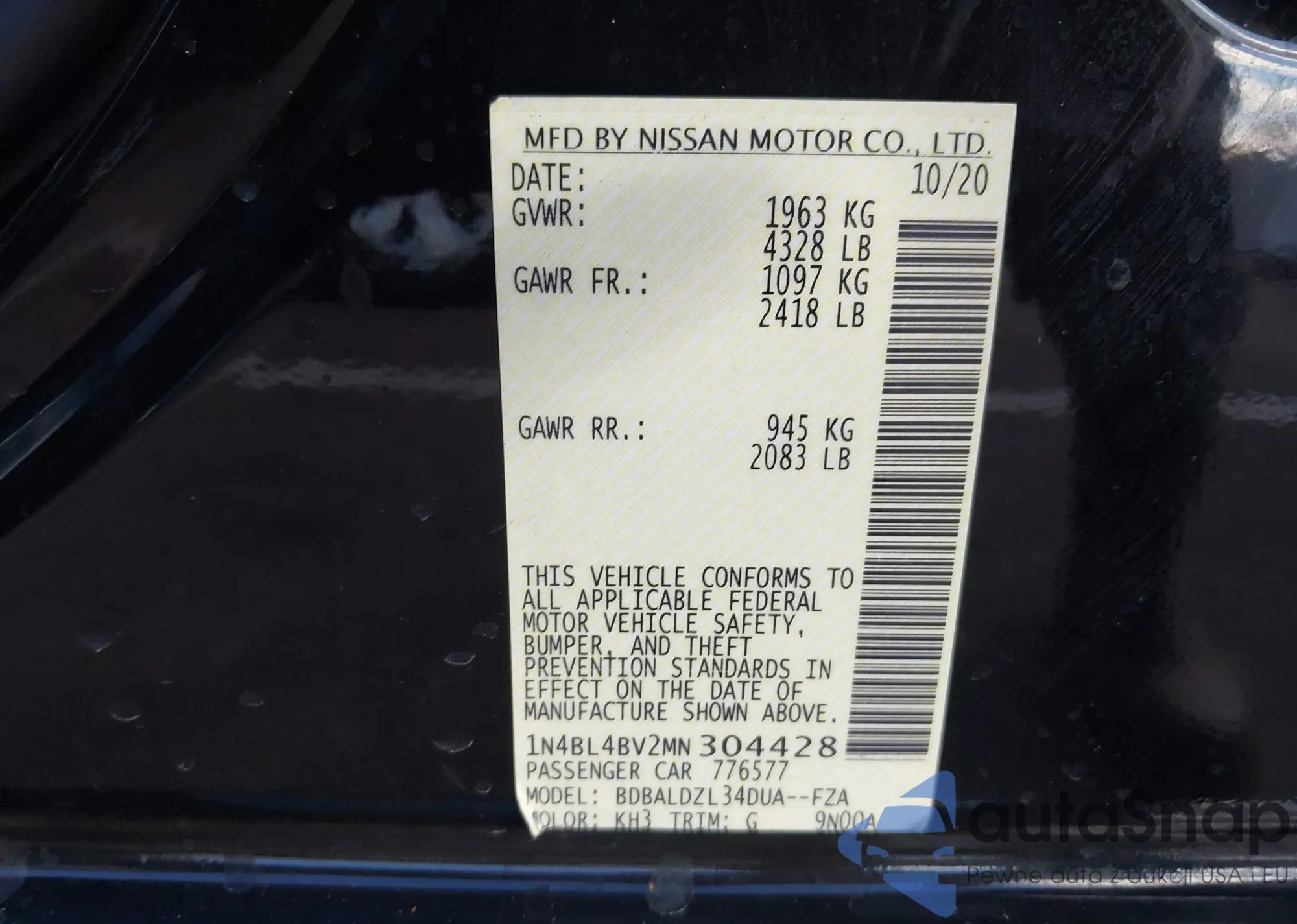 • VIN 1N4BL4BV2MN304428
