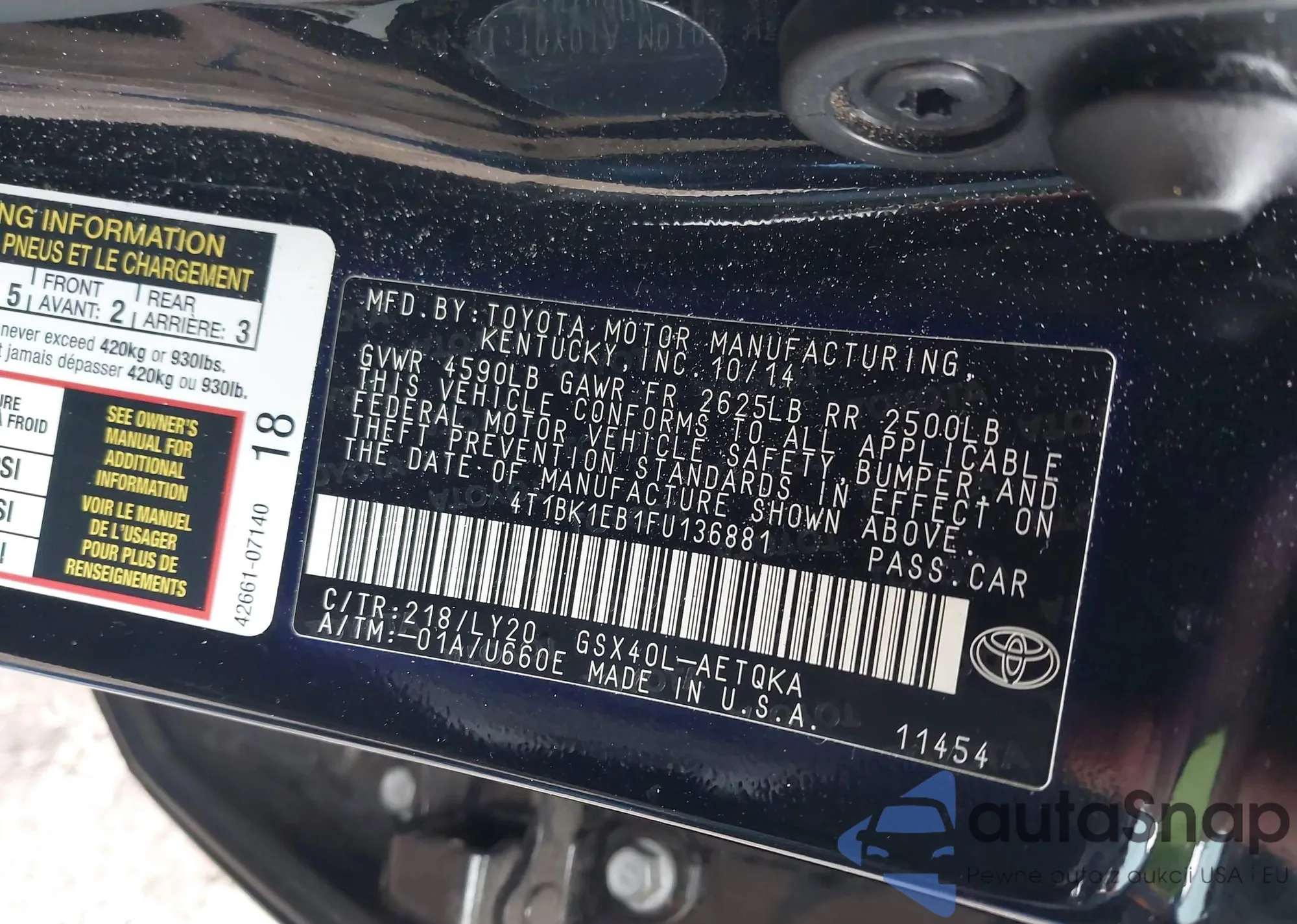 LOT: 43027980 VIN: JTEDW21A660009891