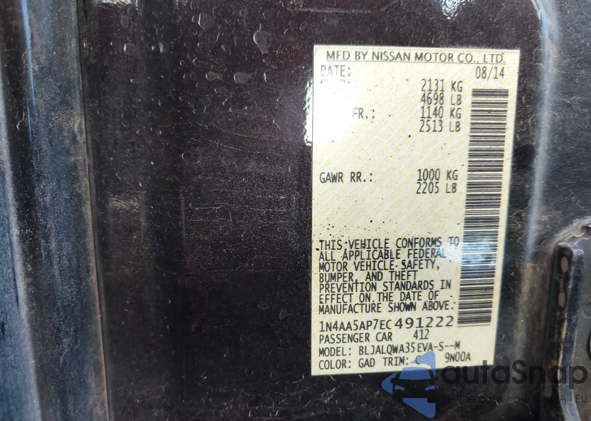 • VIN 1N4AA5AP7EC491222