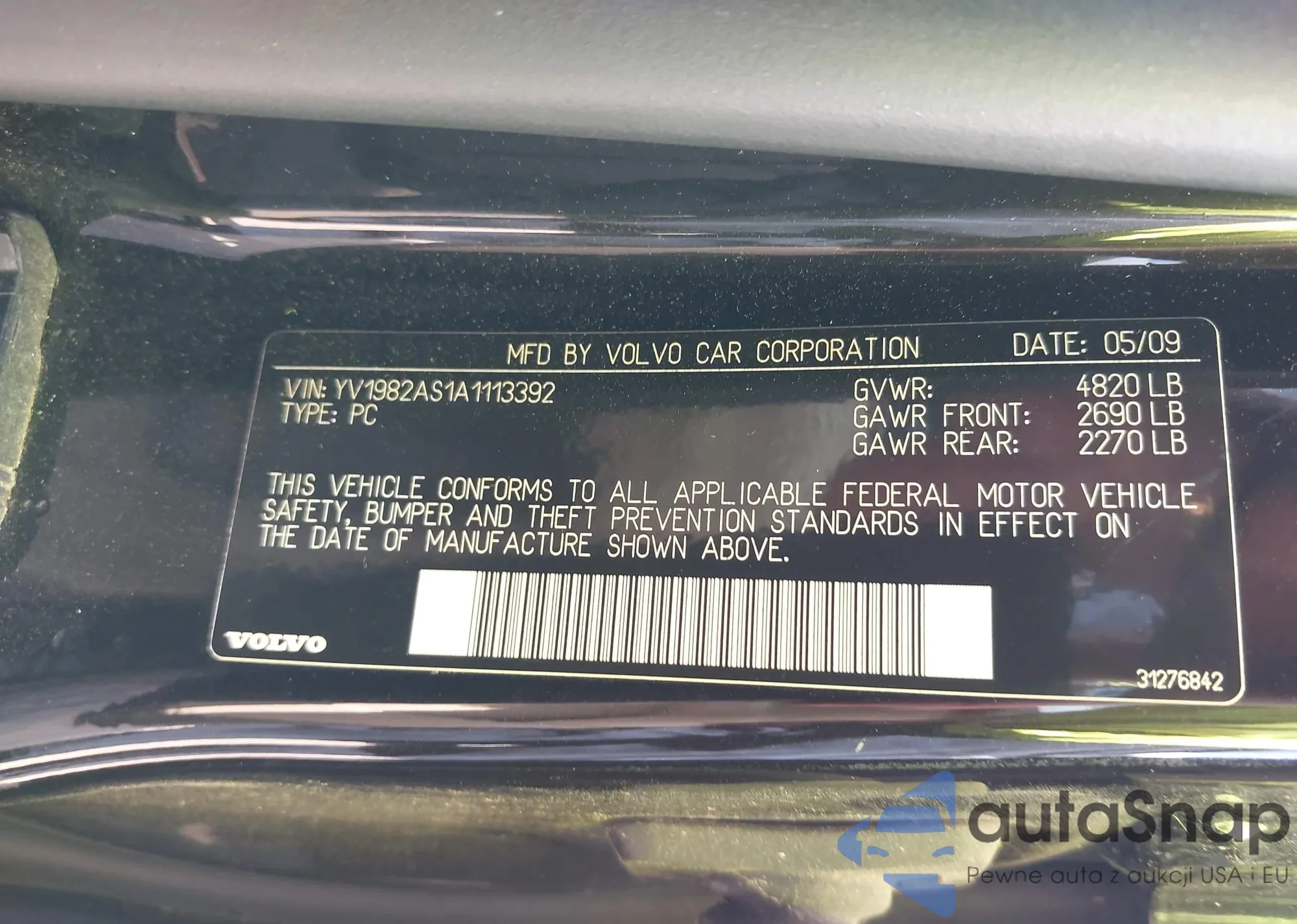 • VIN YV1982AS1A1113392