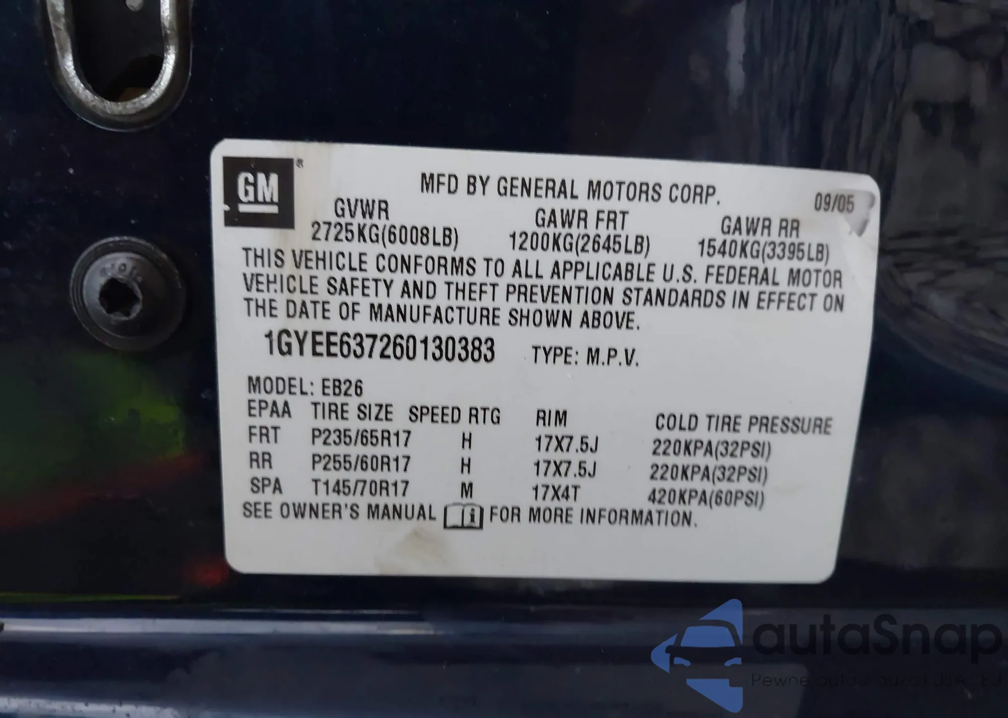 LOT: 43934668 VIN: 1GYEE637260130383