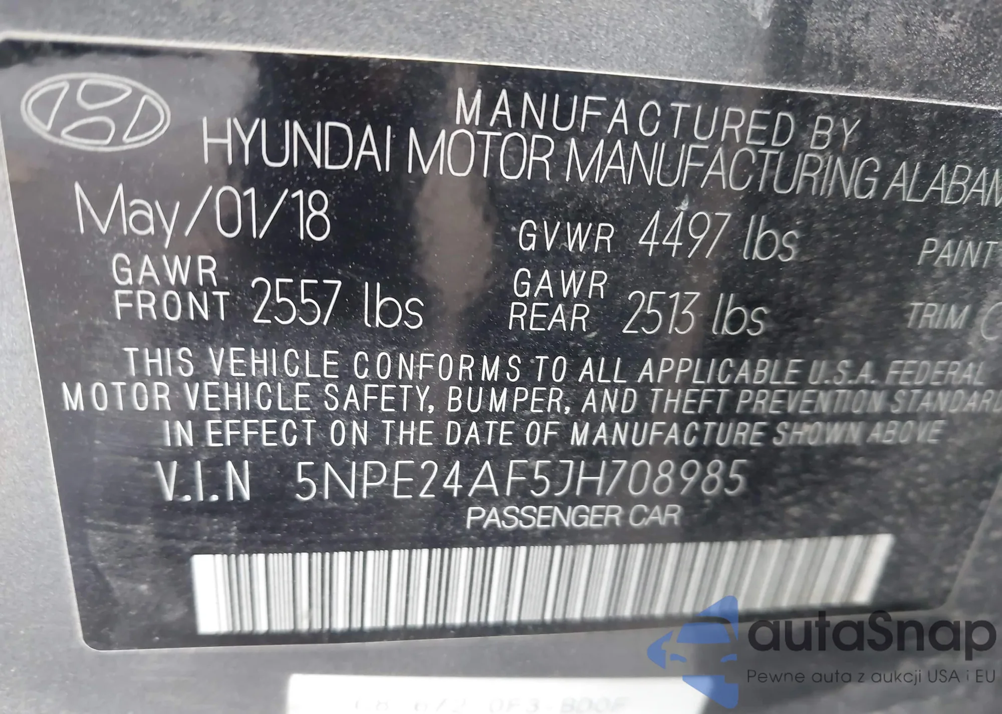 • VIN 5NPE24AF5JH708985
