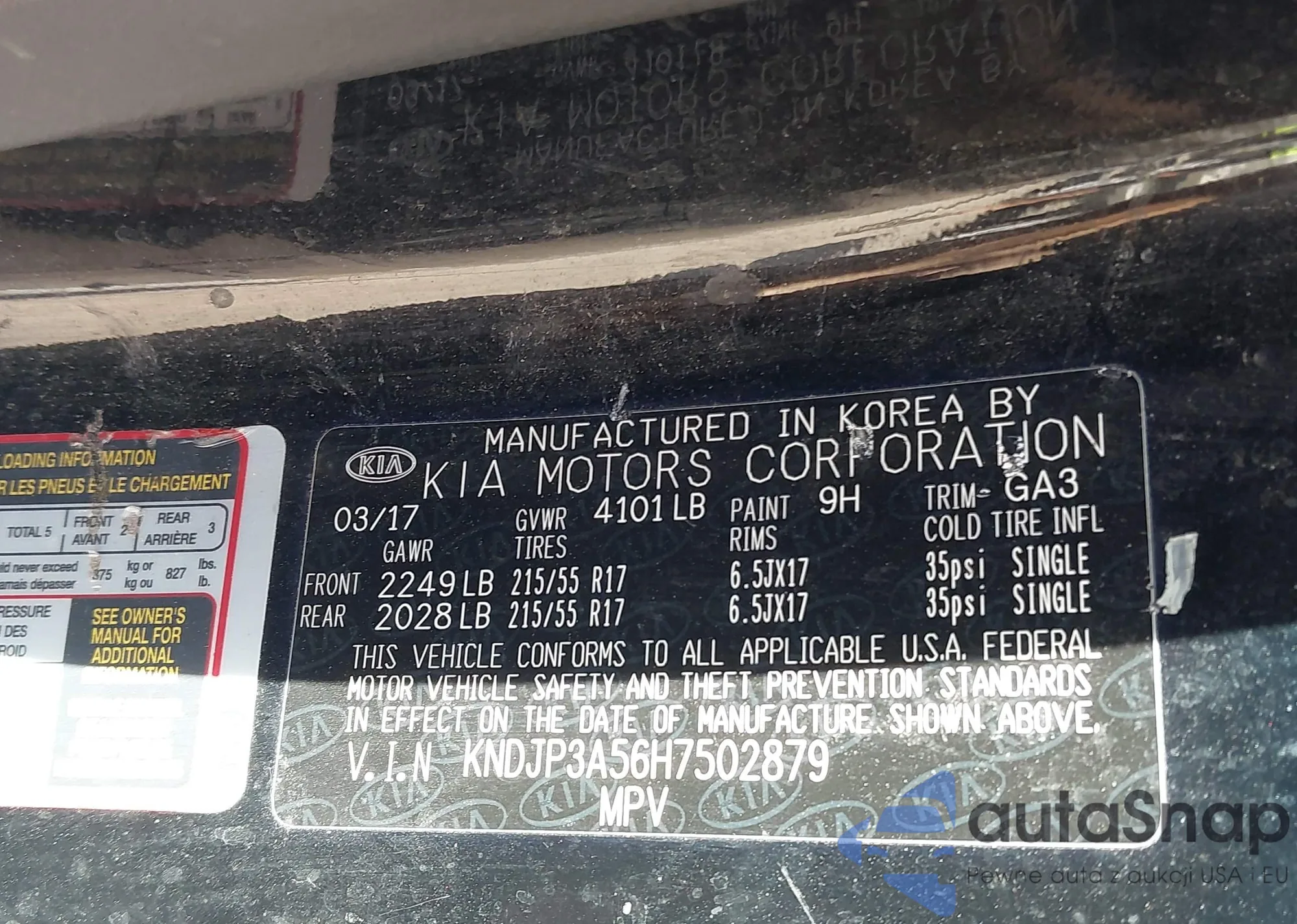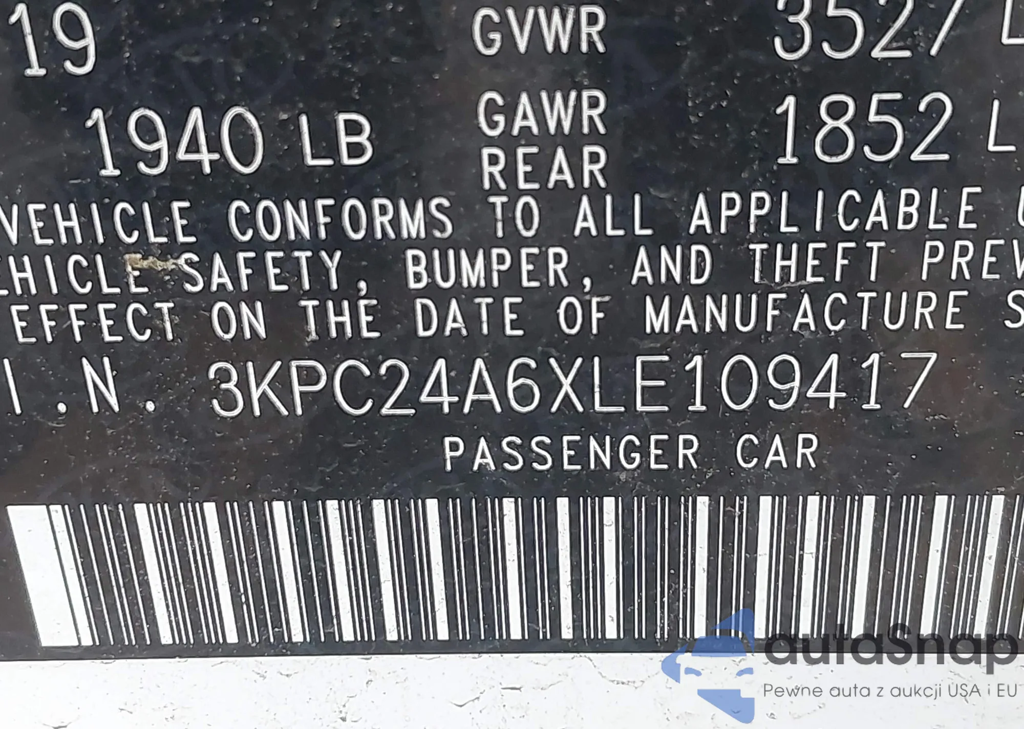 • VIN 3KPC24A6XLE109417