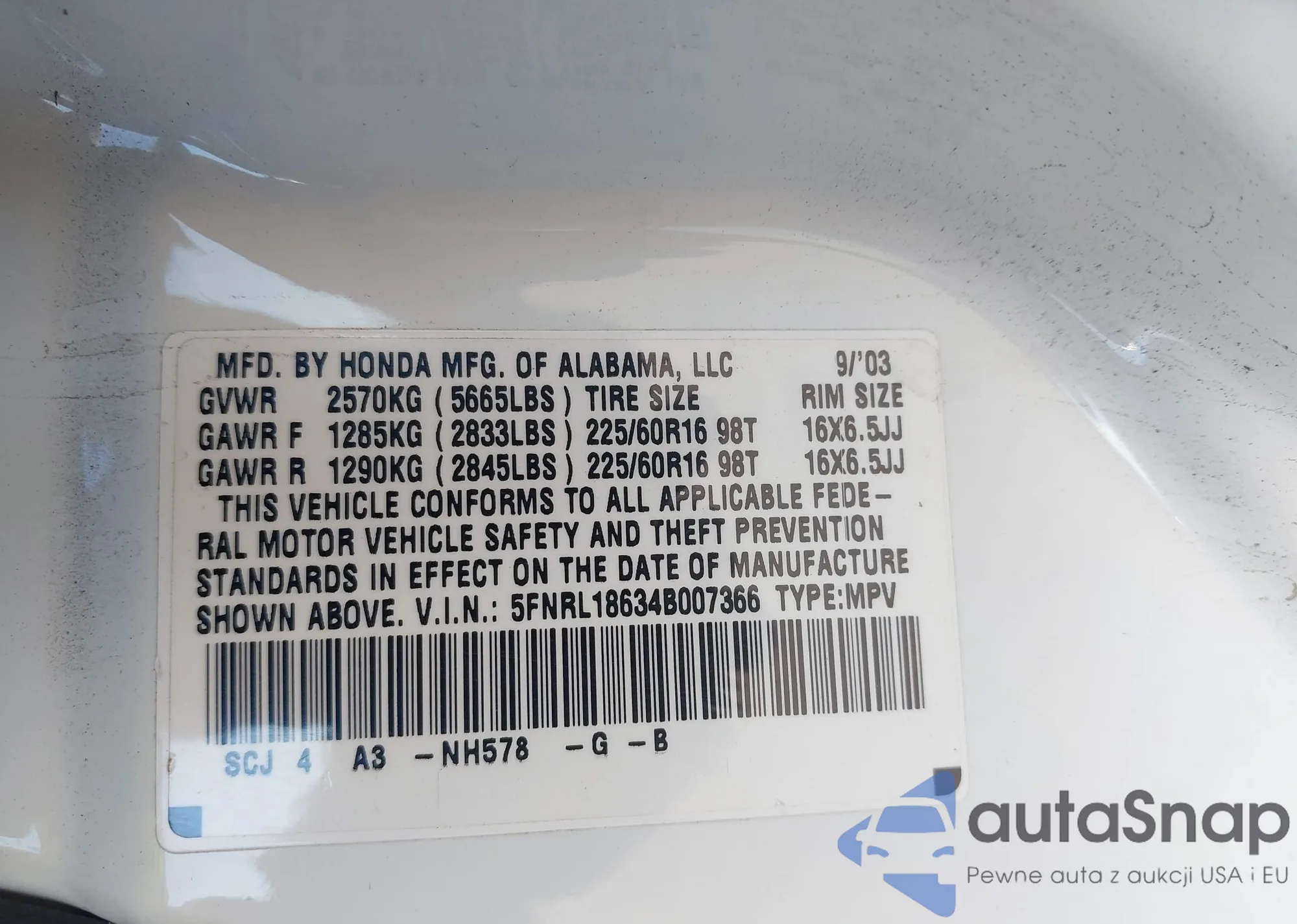 • VIN 5FNRL18634B007366