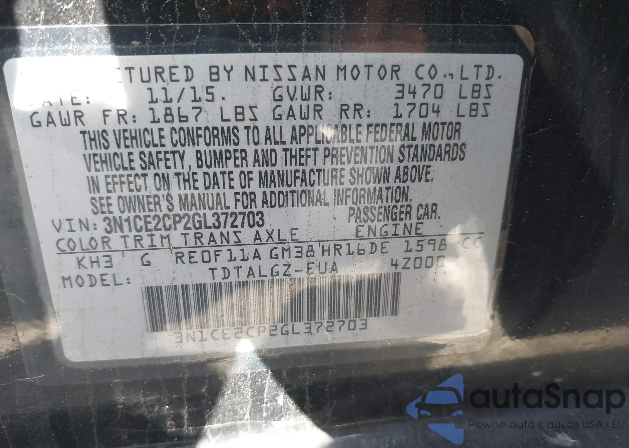 • VIN 3N1CE2CP2GL372703