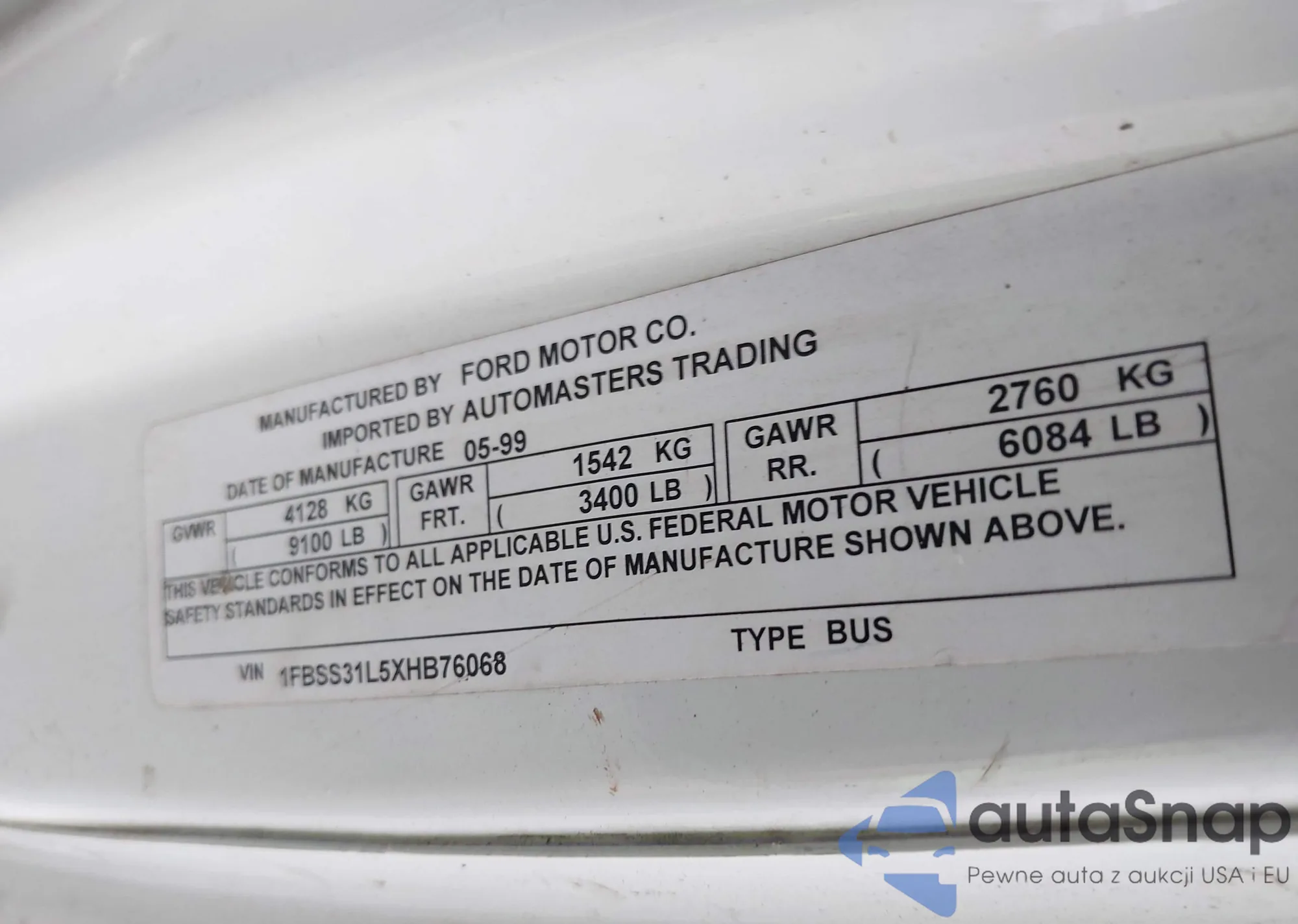 • VIN 1FBSS31L5XHB76068