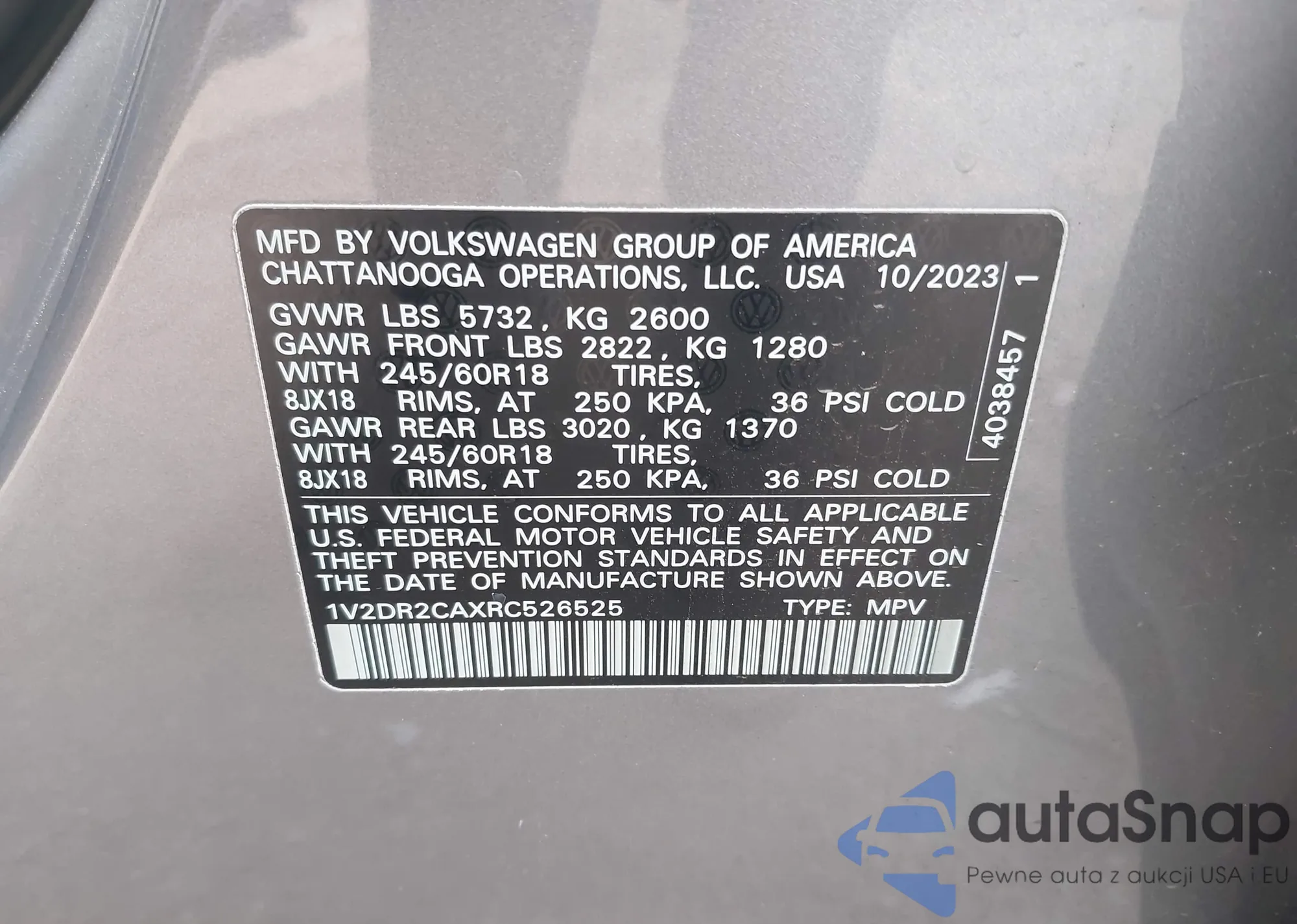 • VIN 1V2DR2CAXRC526525