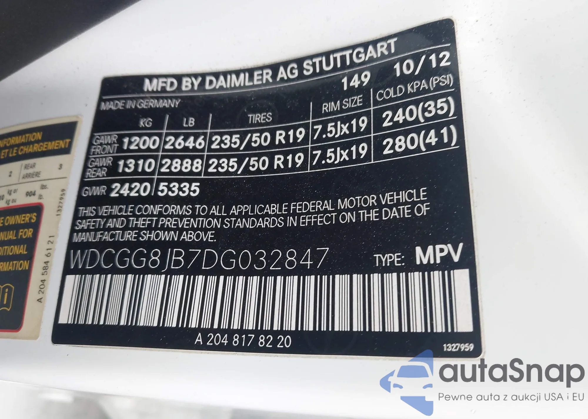 • VIN WDCGG8JB7DG032847