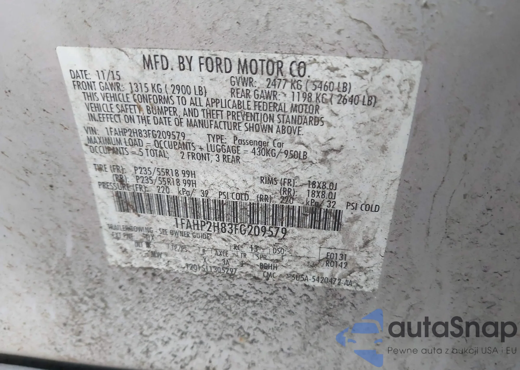 • VIN 1FADP3F21EL231363