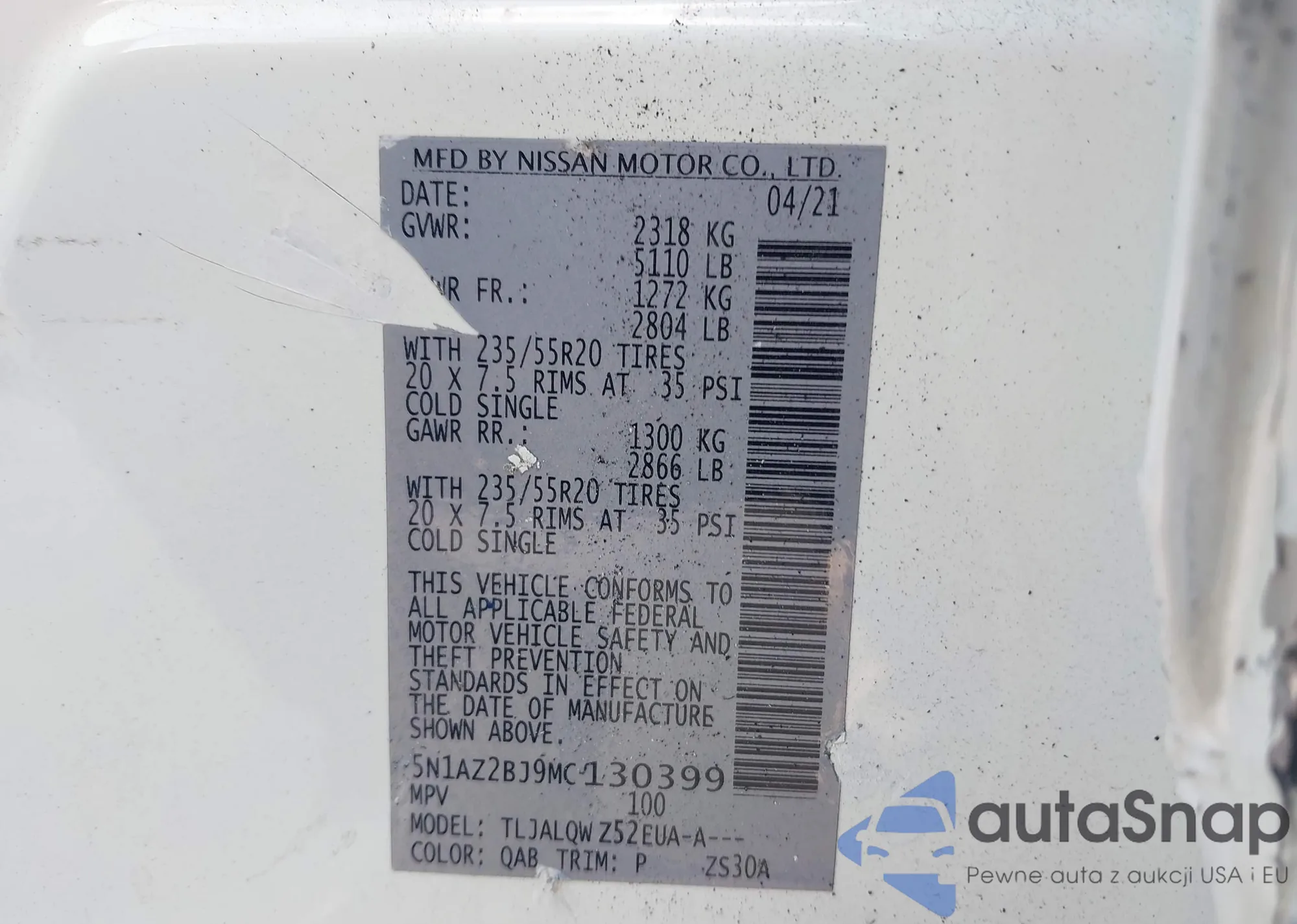 • VIN 5N1AZ2BJ9MC130399