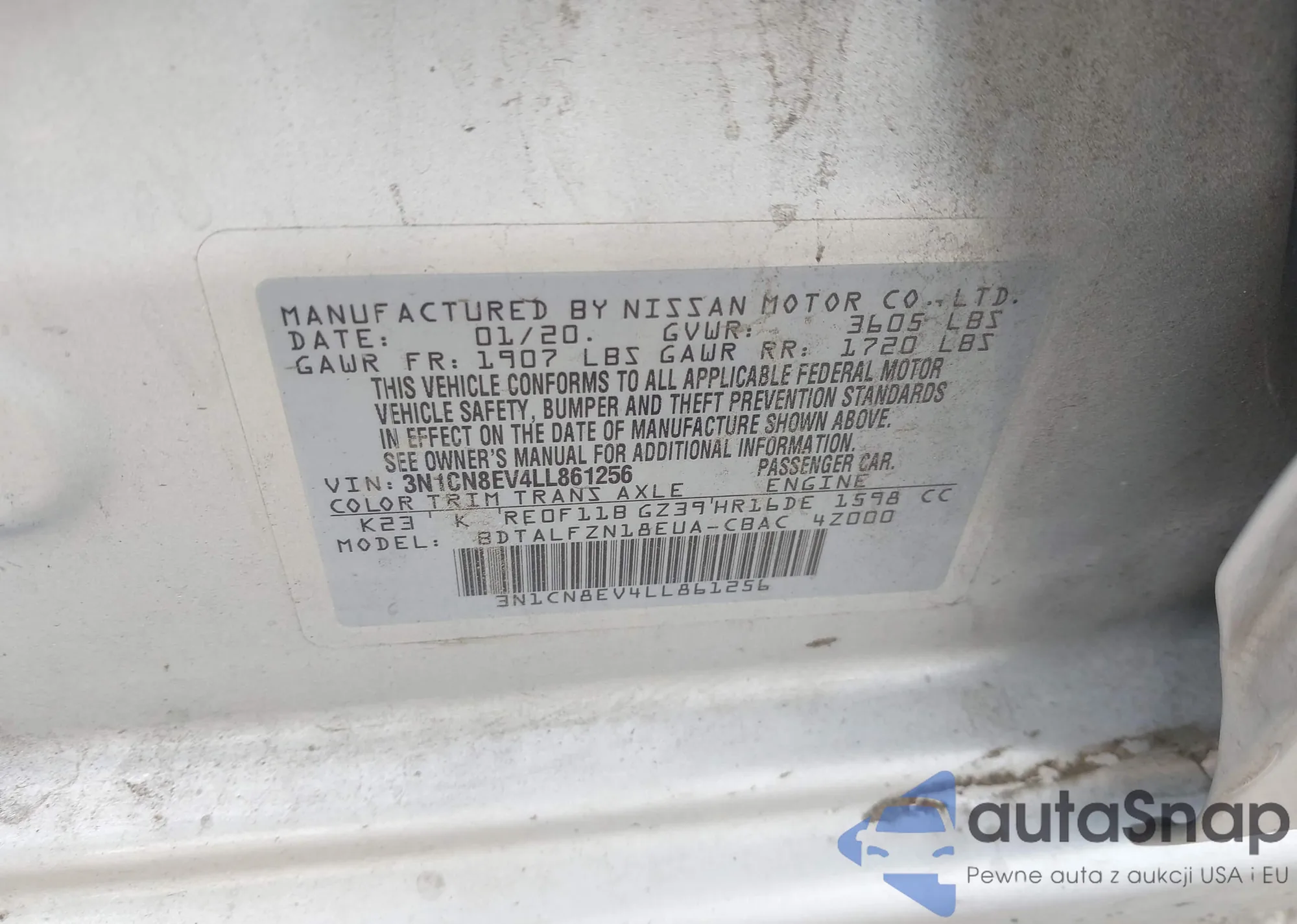 • VIN 3N1CN8EV4LL861256