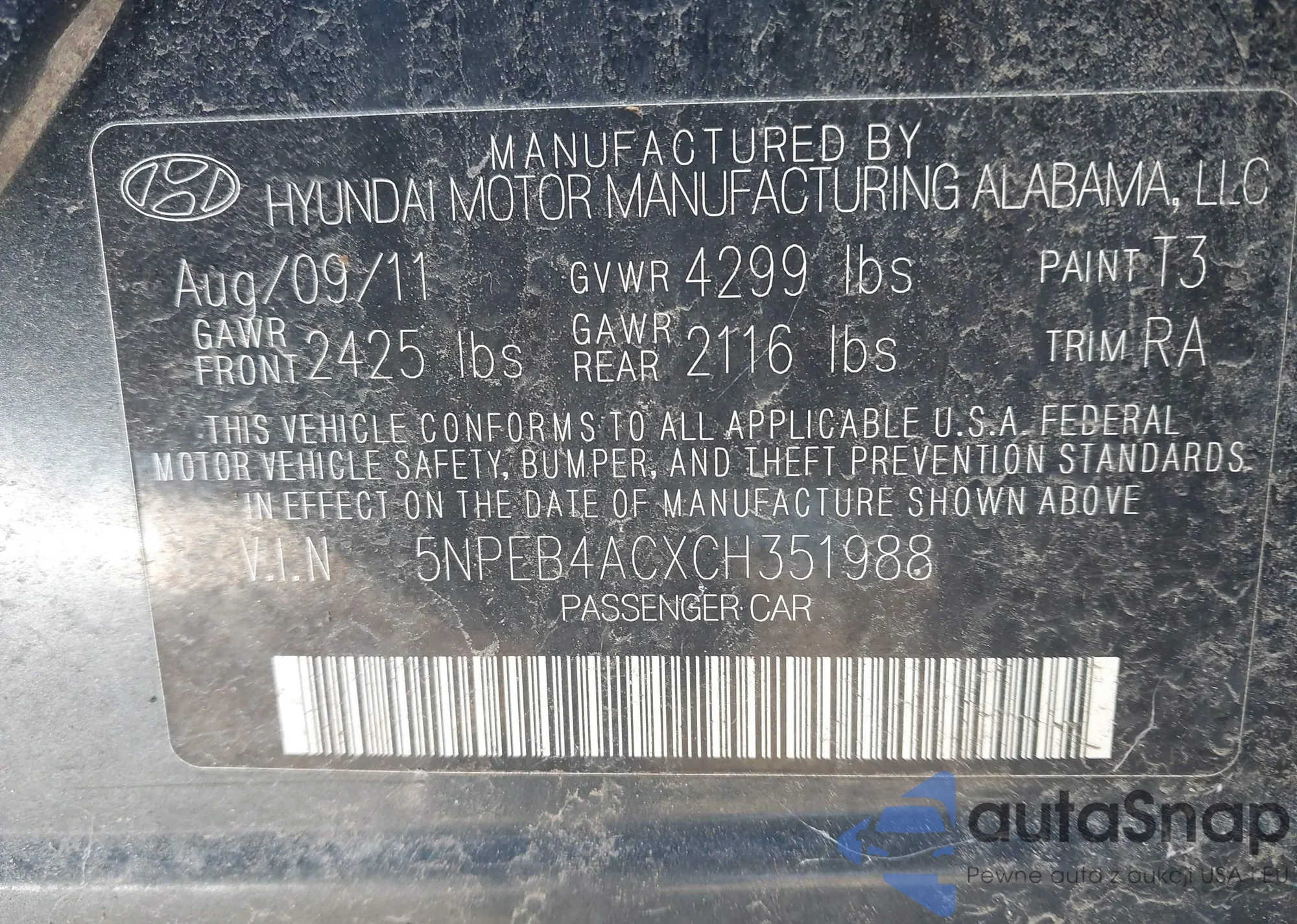 • VIN 5NPEB4ACXCH351988