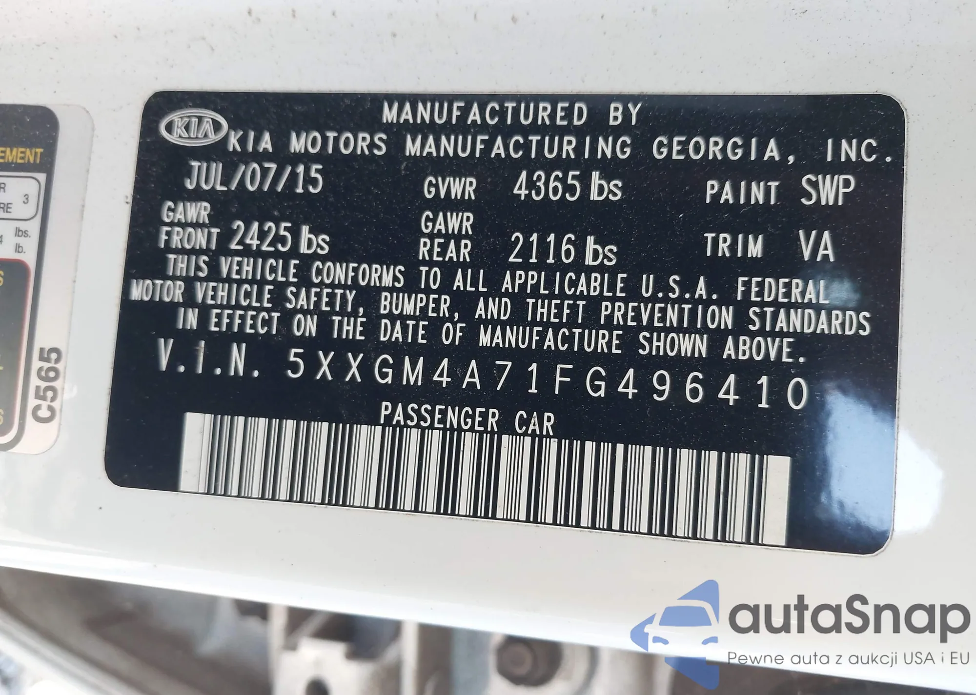 • VIN 5XXGM4A71FG496410