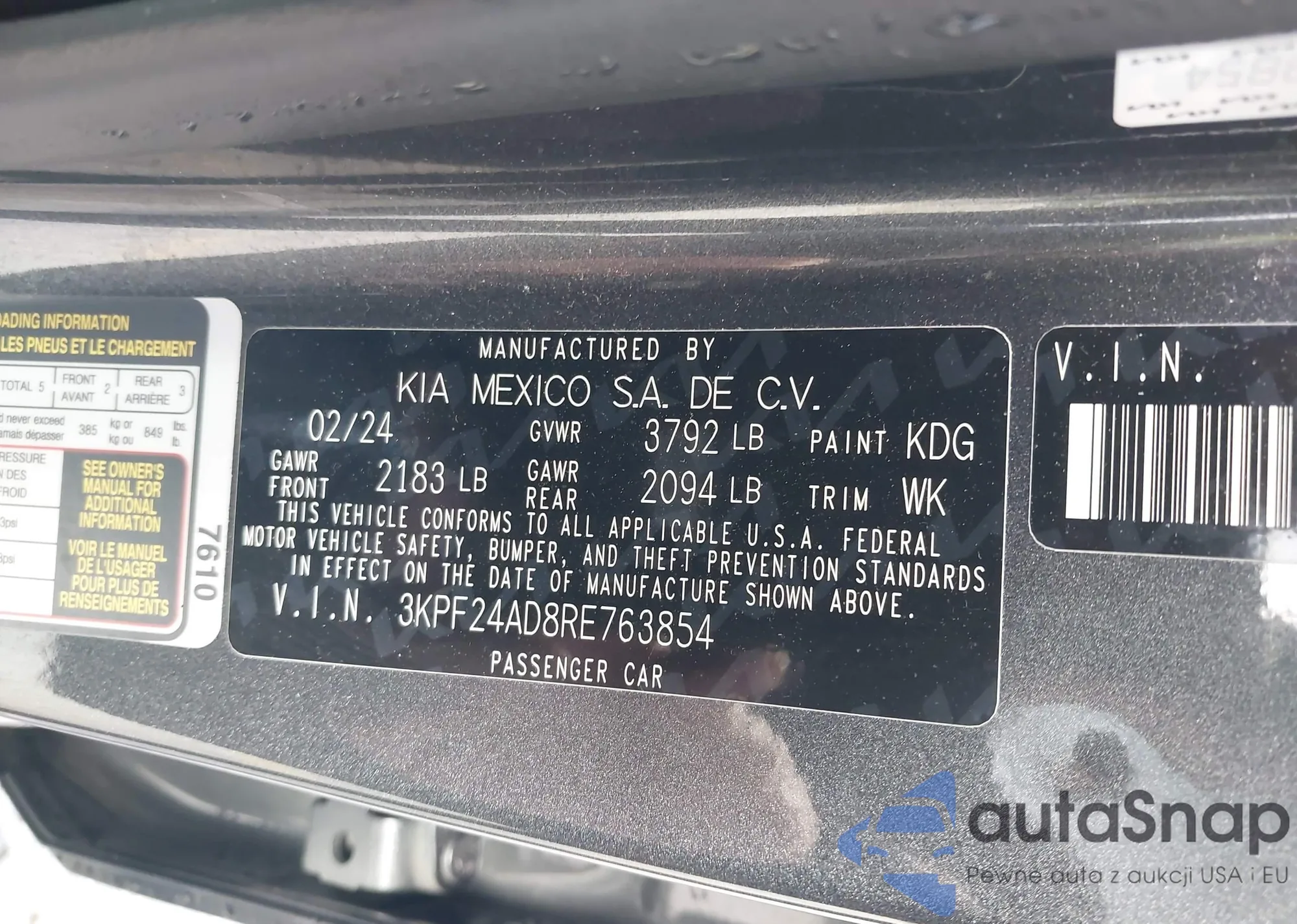 • VIN 5XYKT4A23CG242920