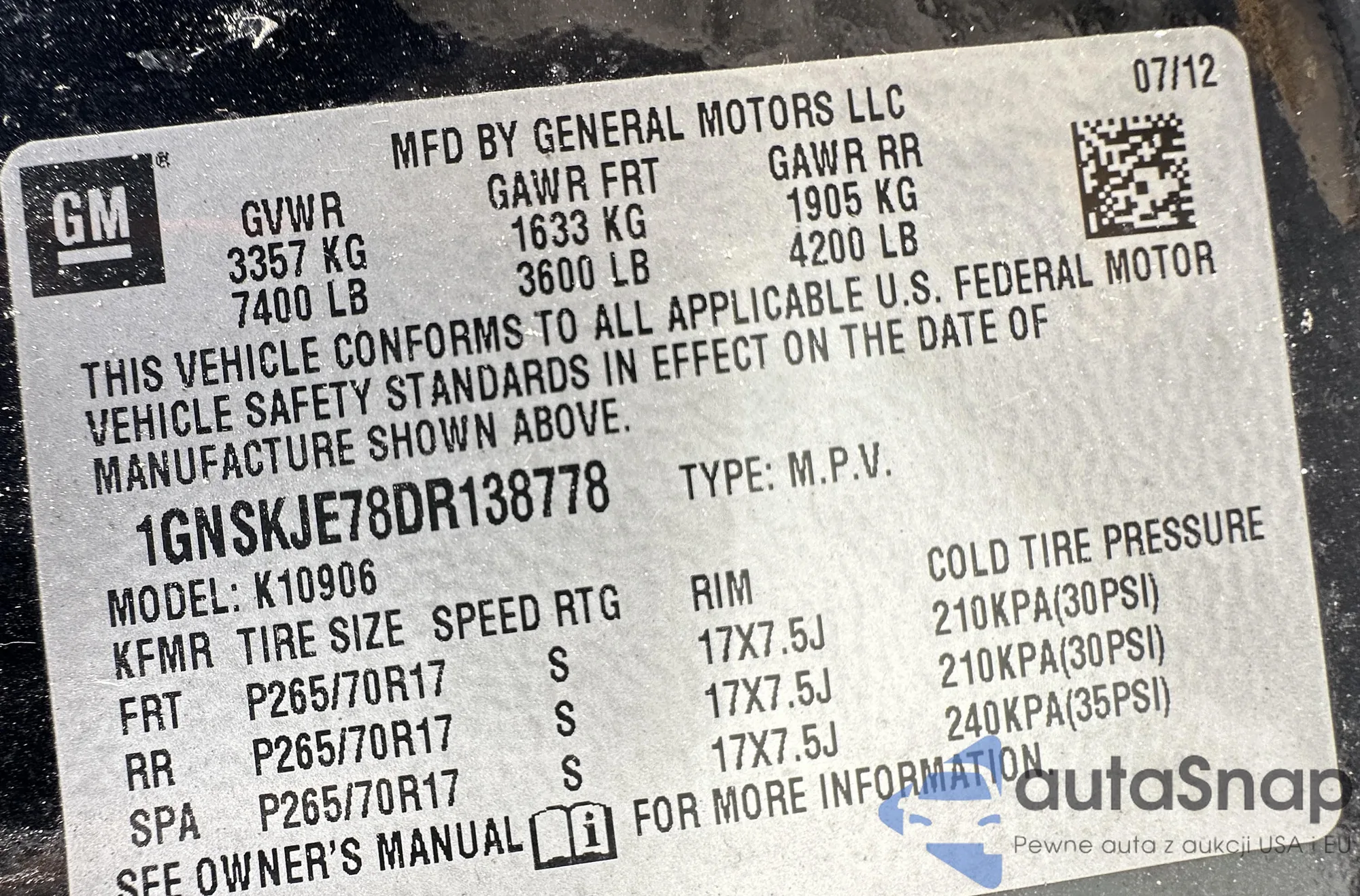• VIN 5XXGM4A75DG167772
