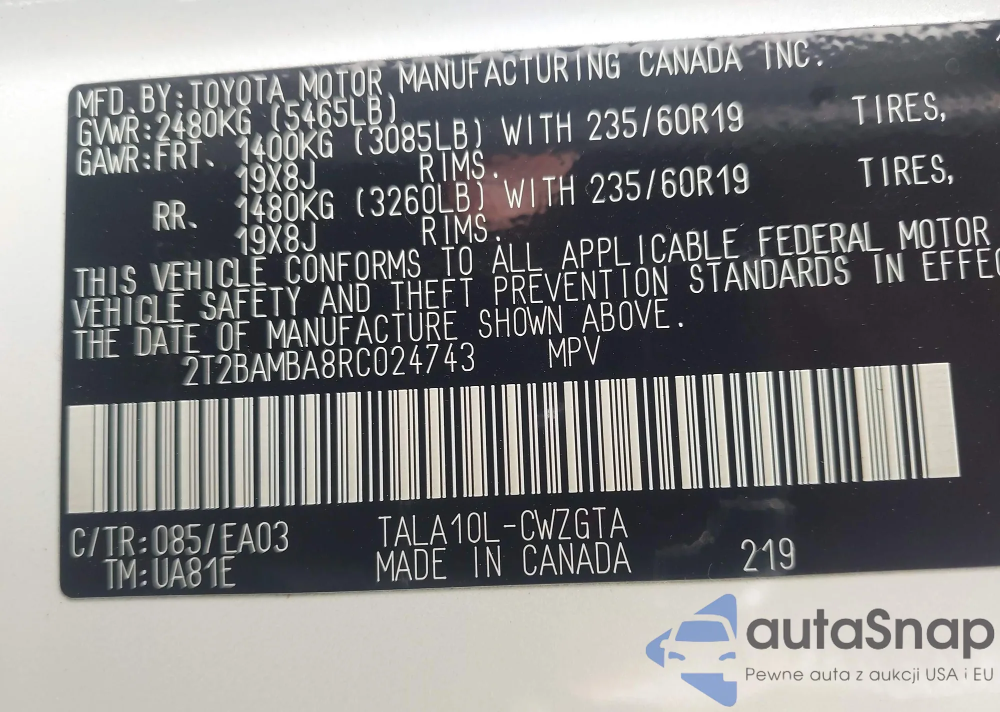 • VIN 1HGCP3F8XCA027696