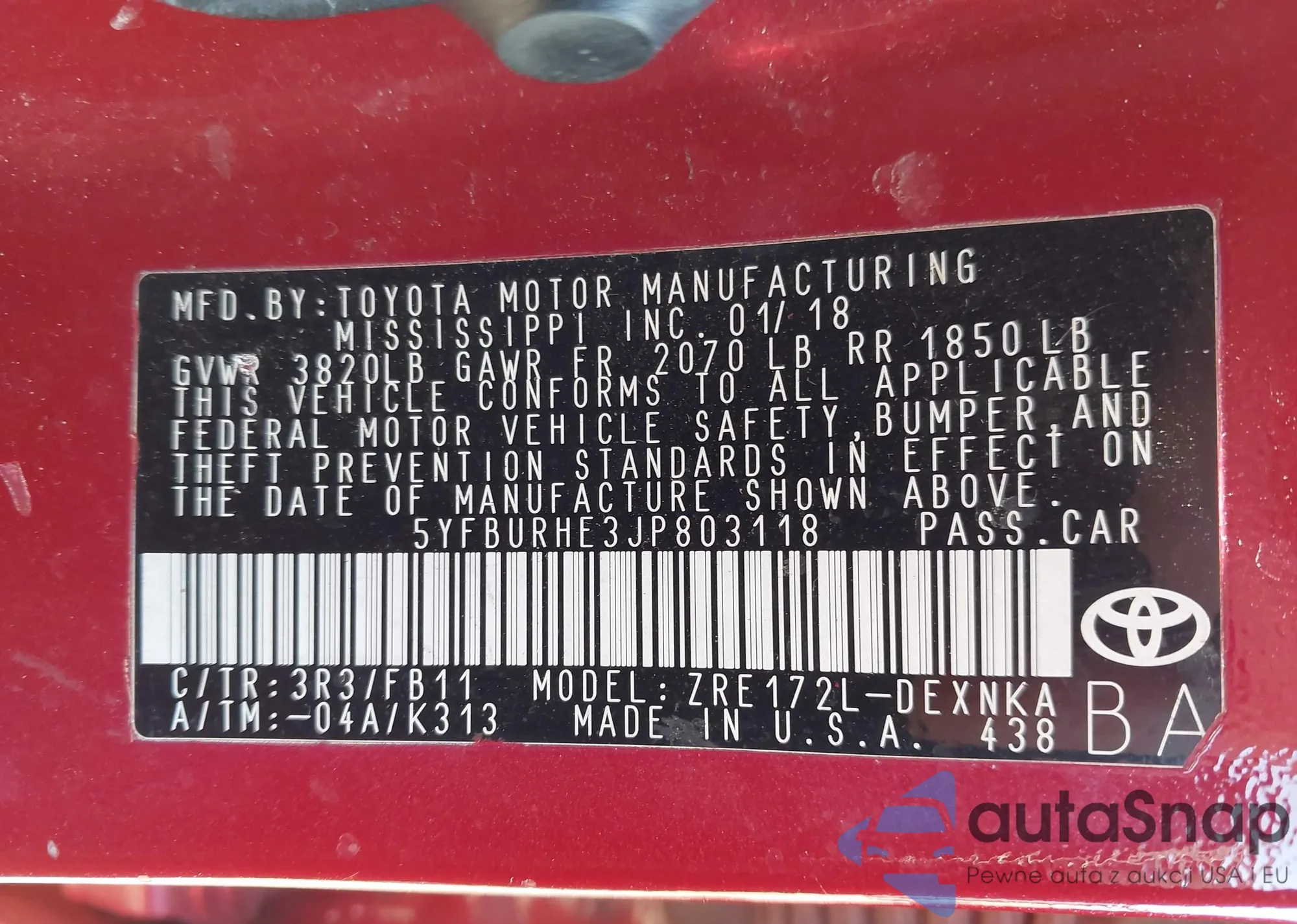 • VIN 5YFBURHE3JP803118