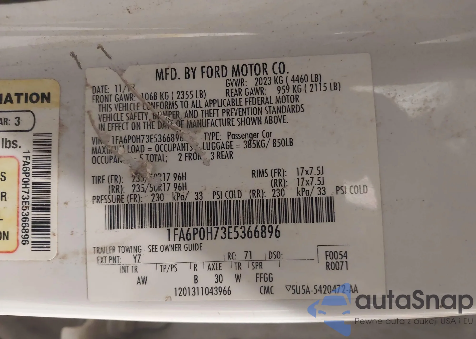 • VIN 1FA6P0H73E5366896
