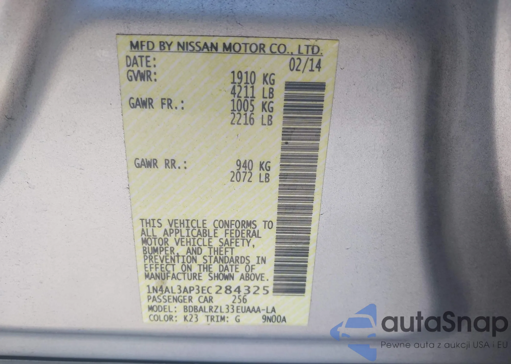 LOT: 43802837 VIN: 7FART6H8XME017864