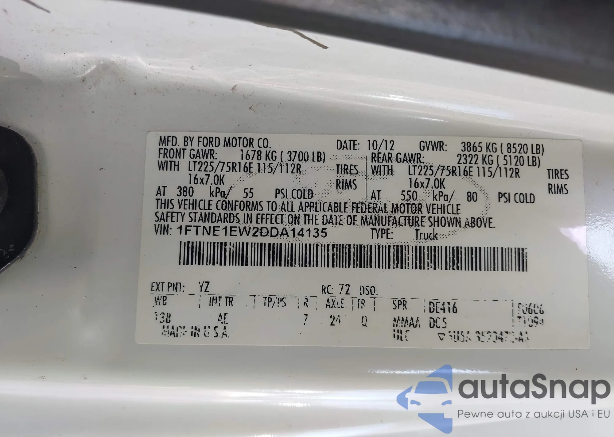 • VIN 1FTNE1EW2DDA14135