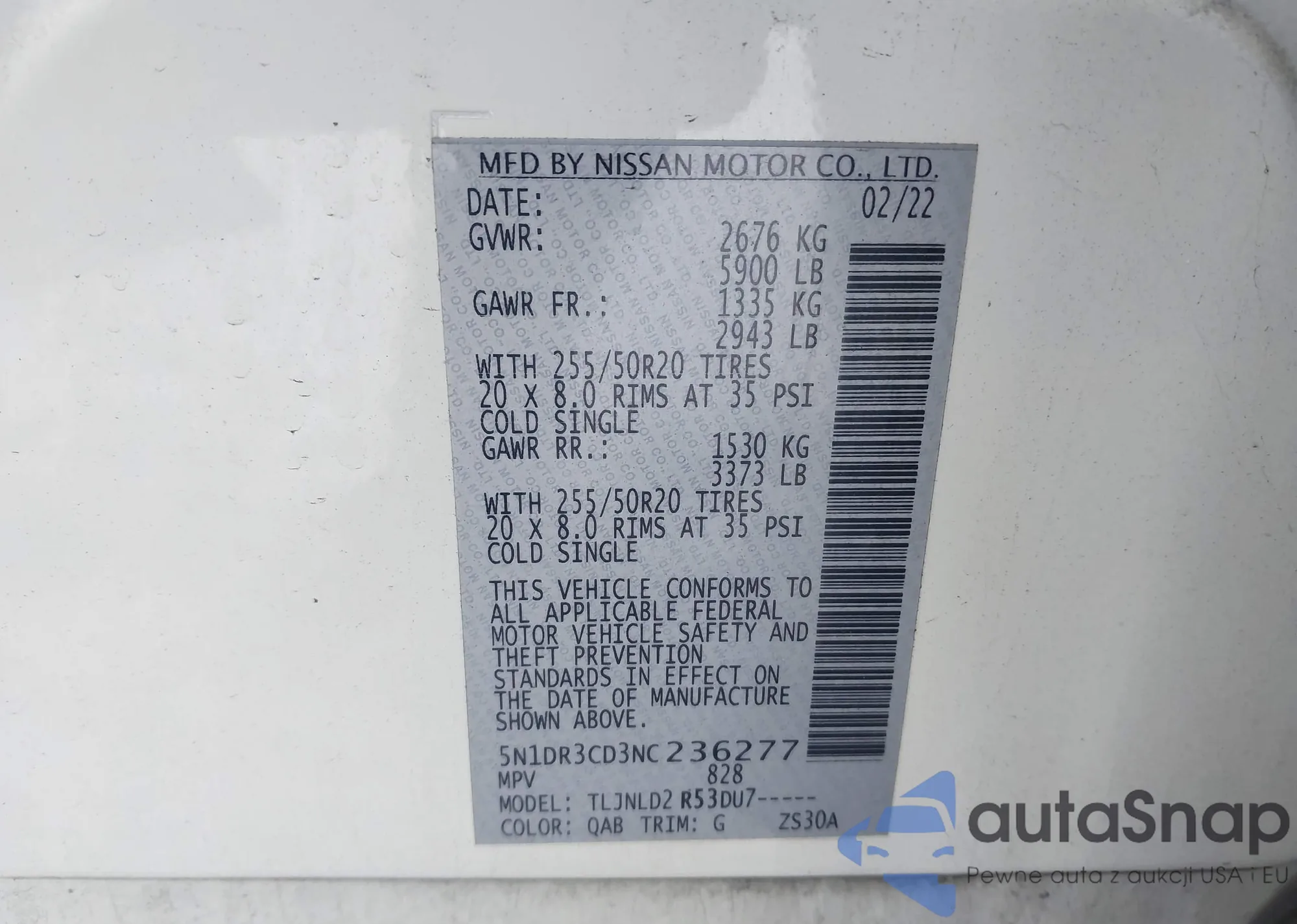 • VIN 5N1DR3CD3NC236277