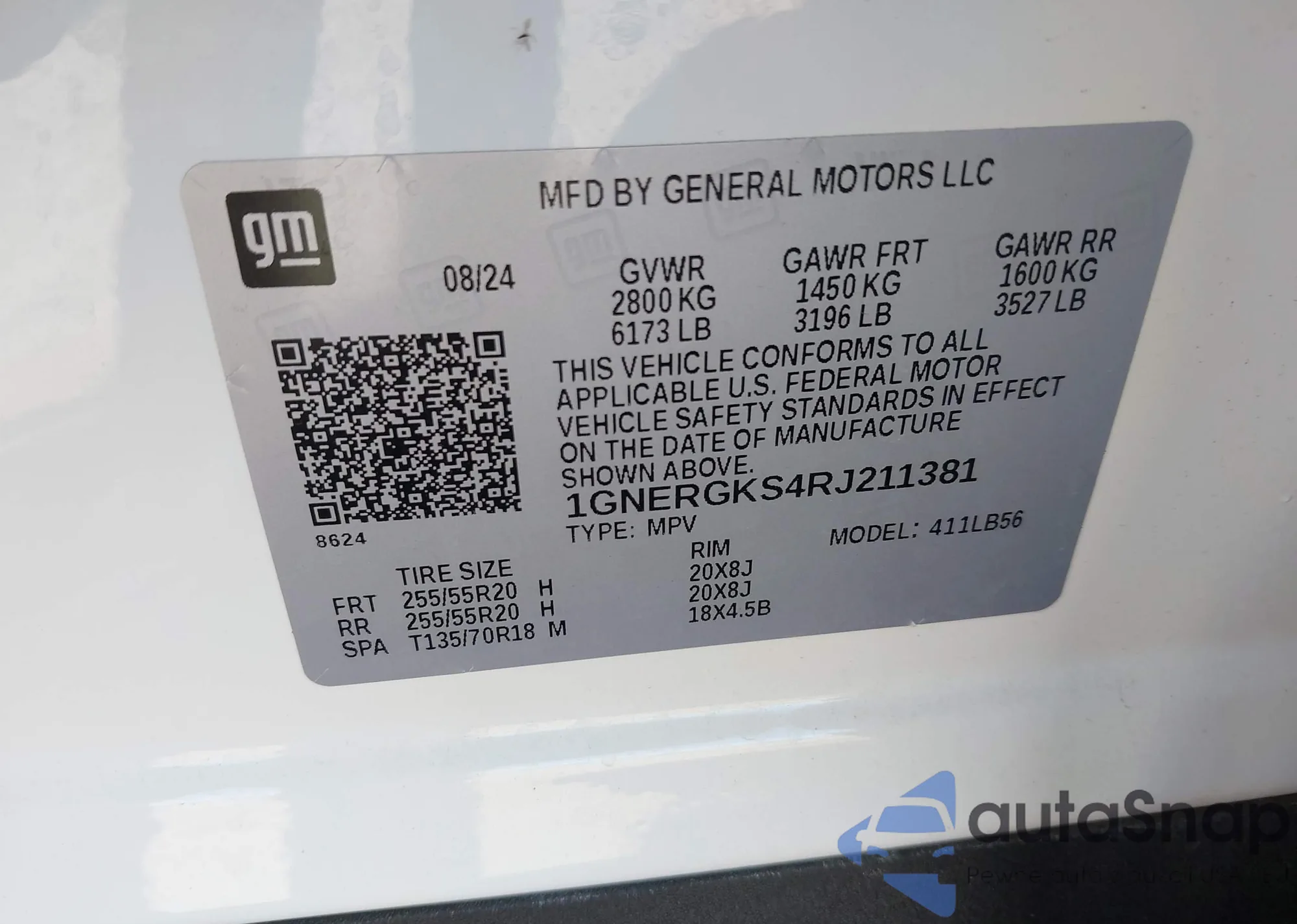 LOT: 43825317 VIN: 1GNERGKS4RJ211381