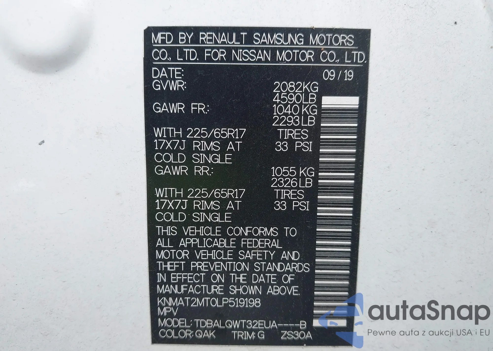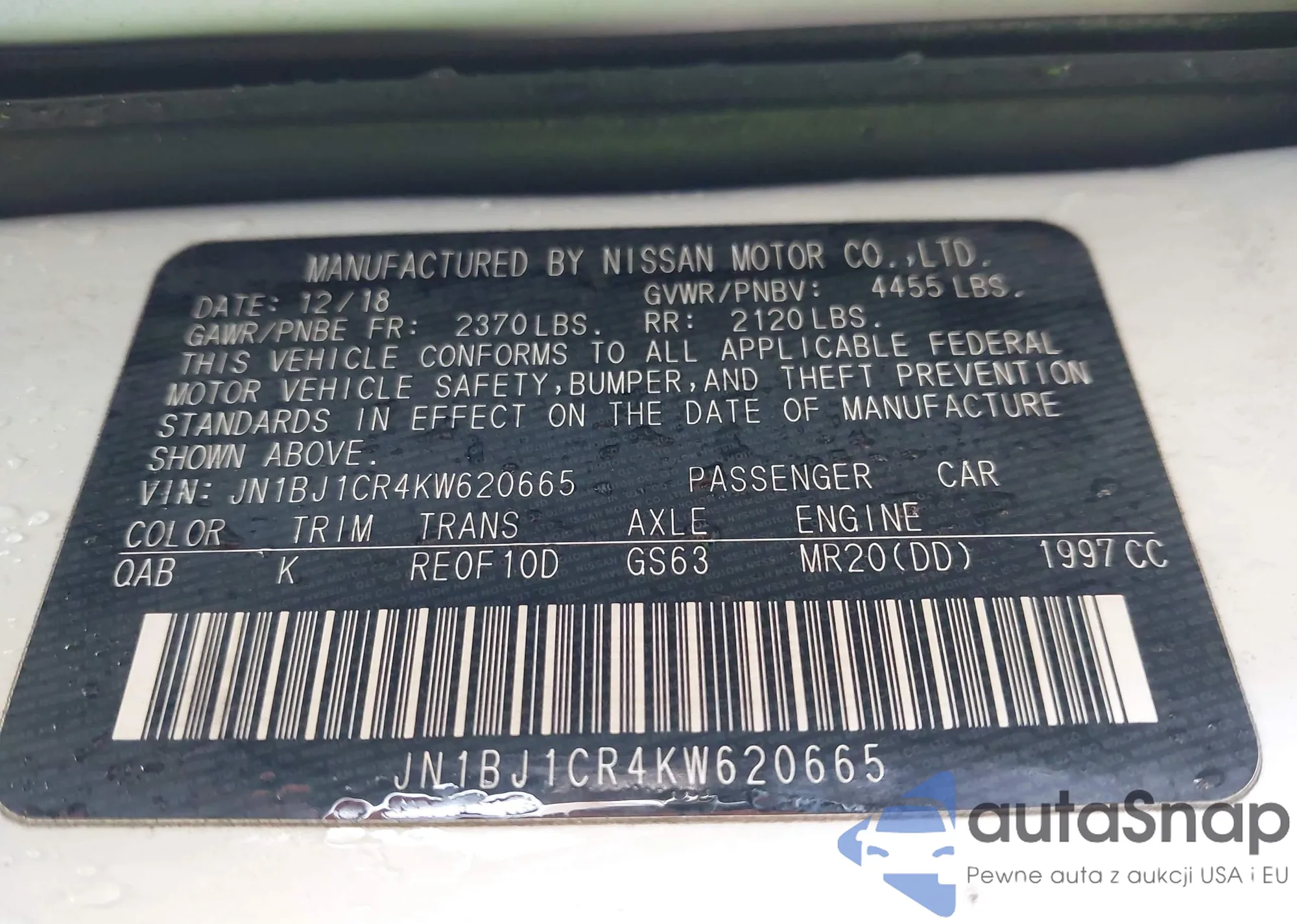 LOT: 43785880 VIN: JN1BJ1CR4KW620665