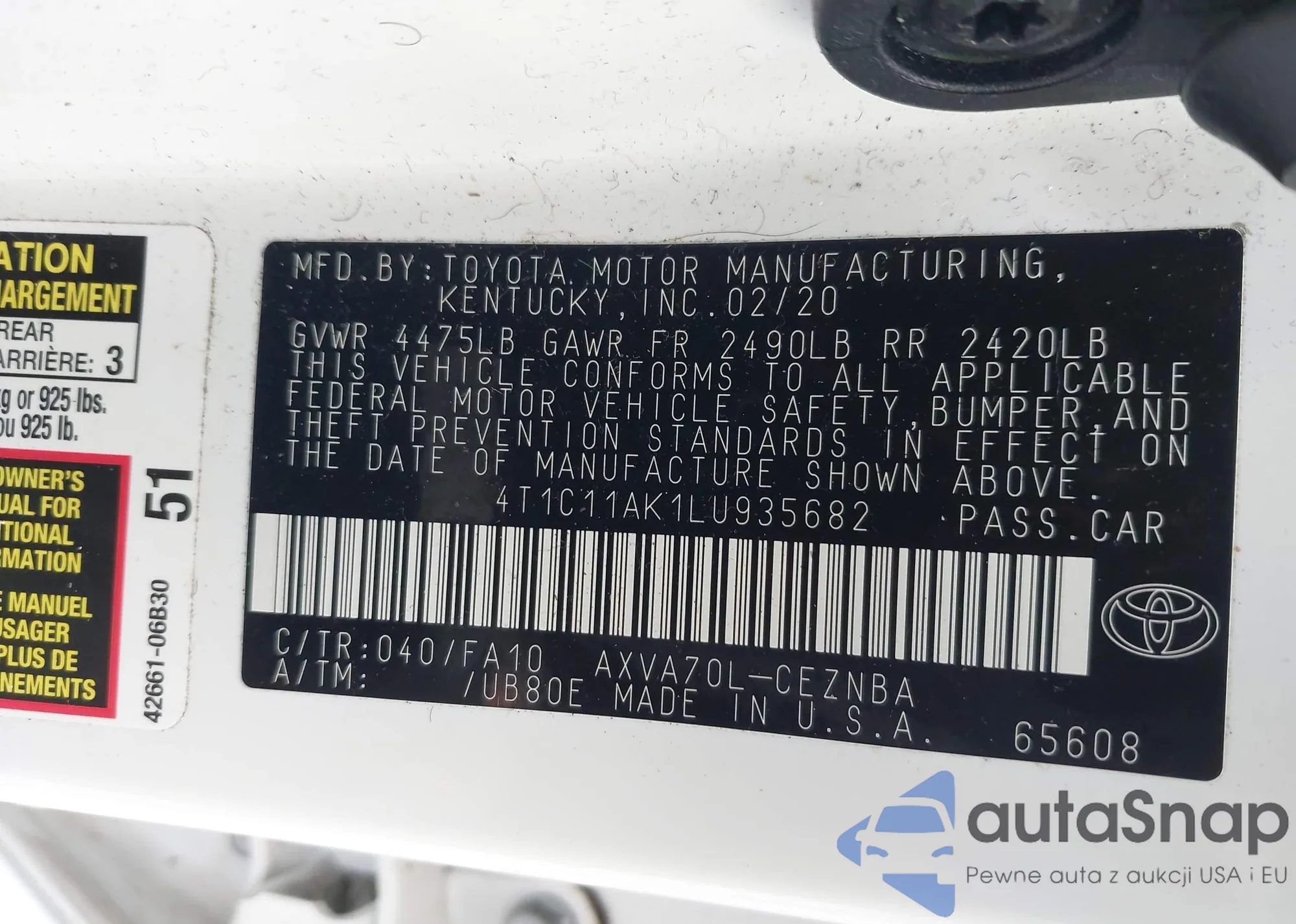 LOT: 43854149 VIN: JTDVPMAE9MJ123038