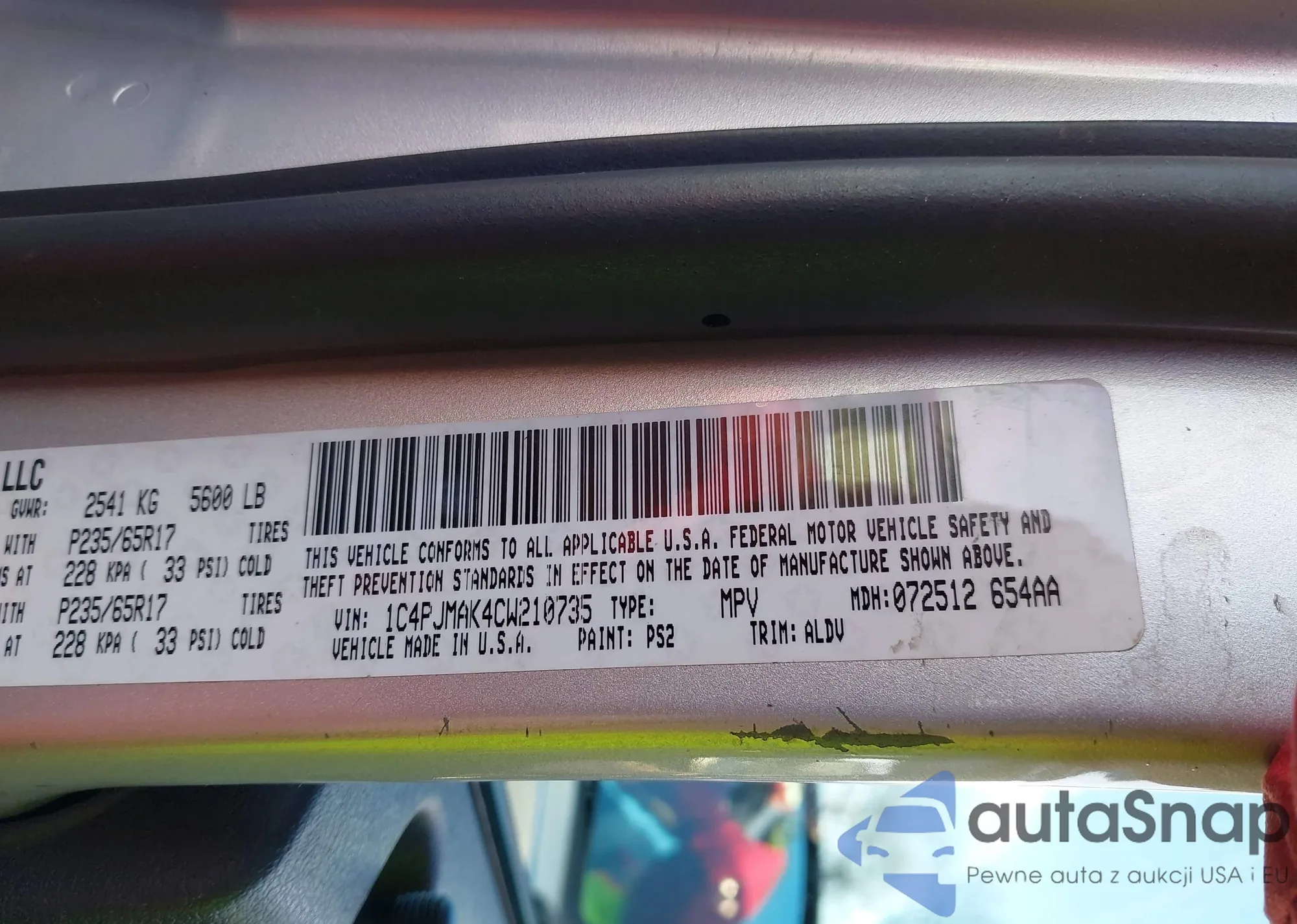 • VIN 1C4PJMAK4CW210735