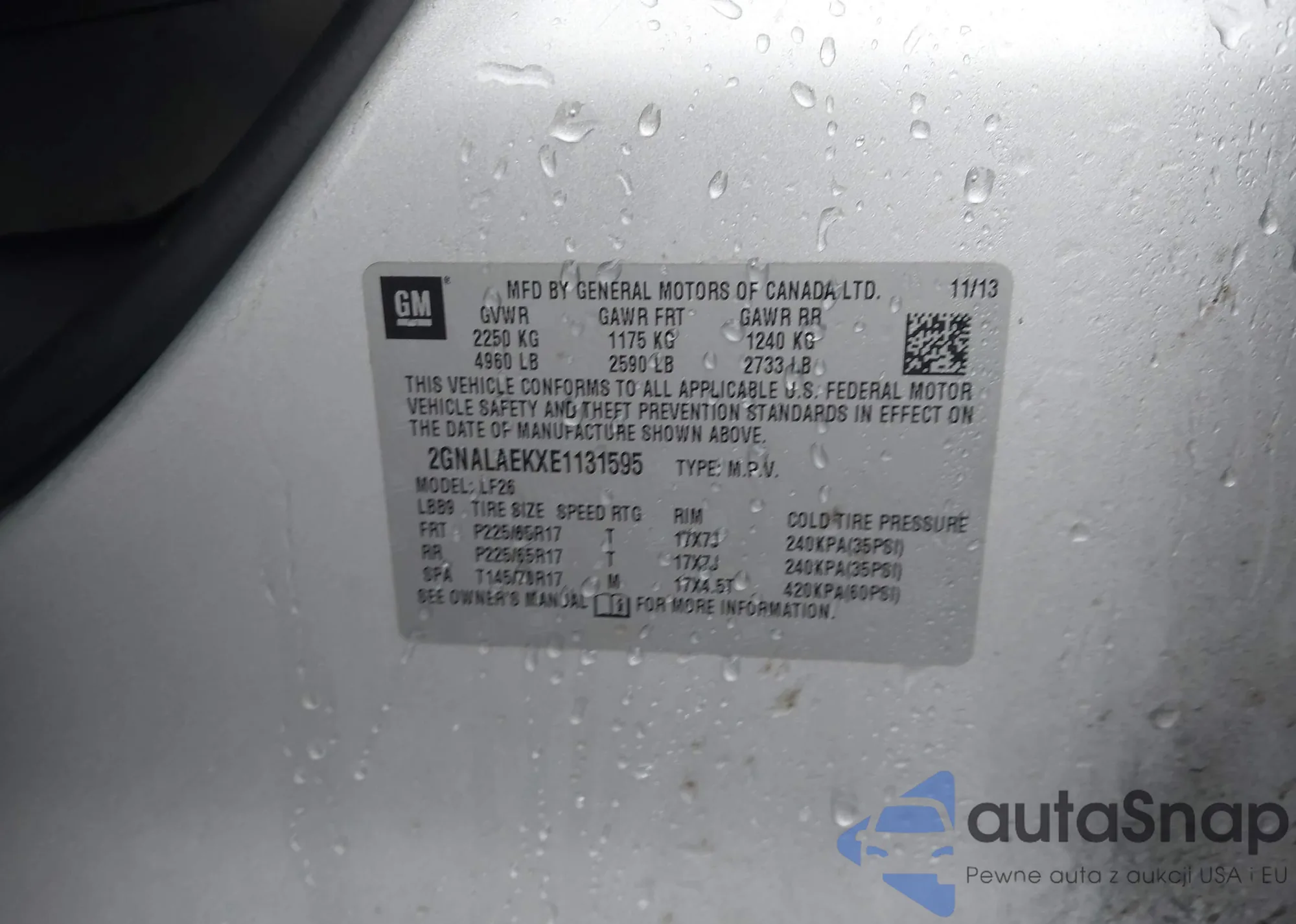 LOT: 43843060 VIN: 2GNALAEKXE1131595
