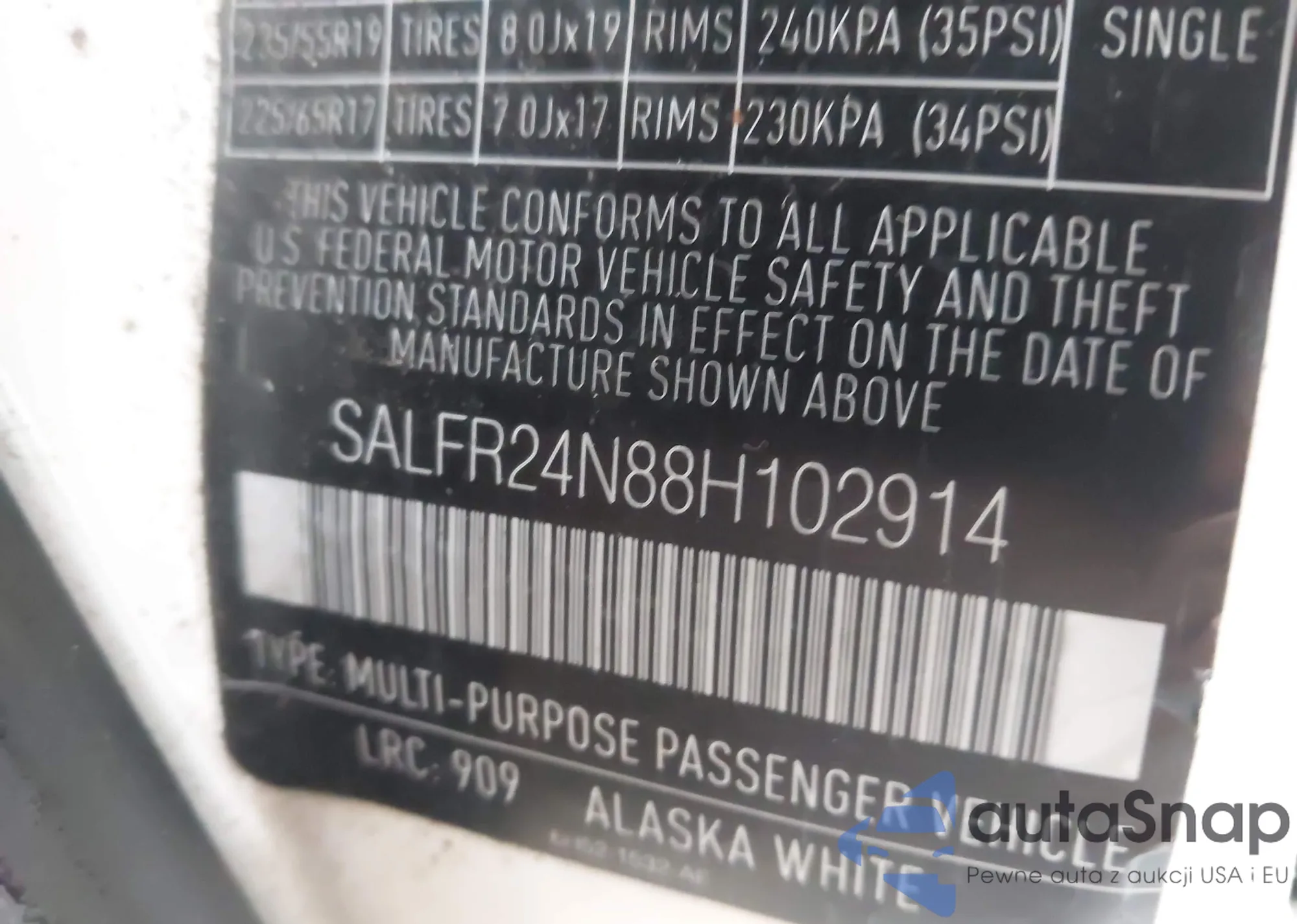 LOT: 43870546 VIN: SALFR24N88H102914