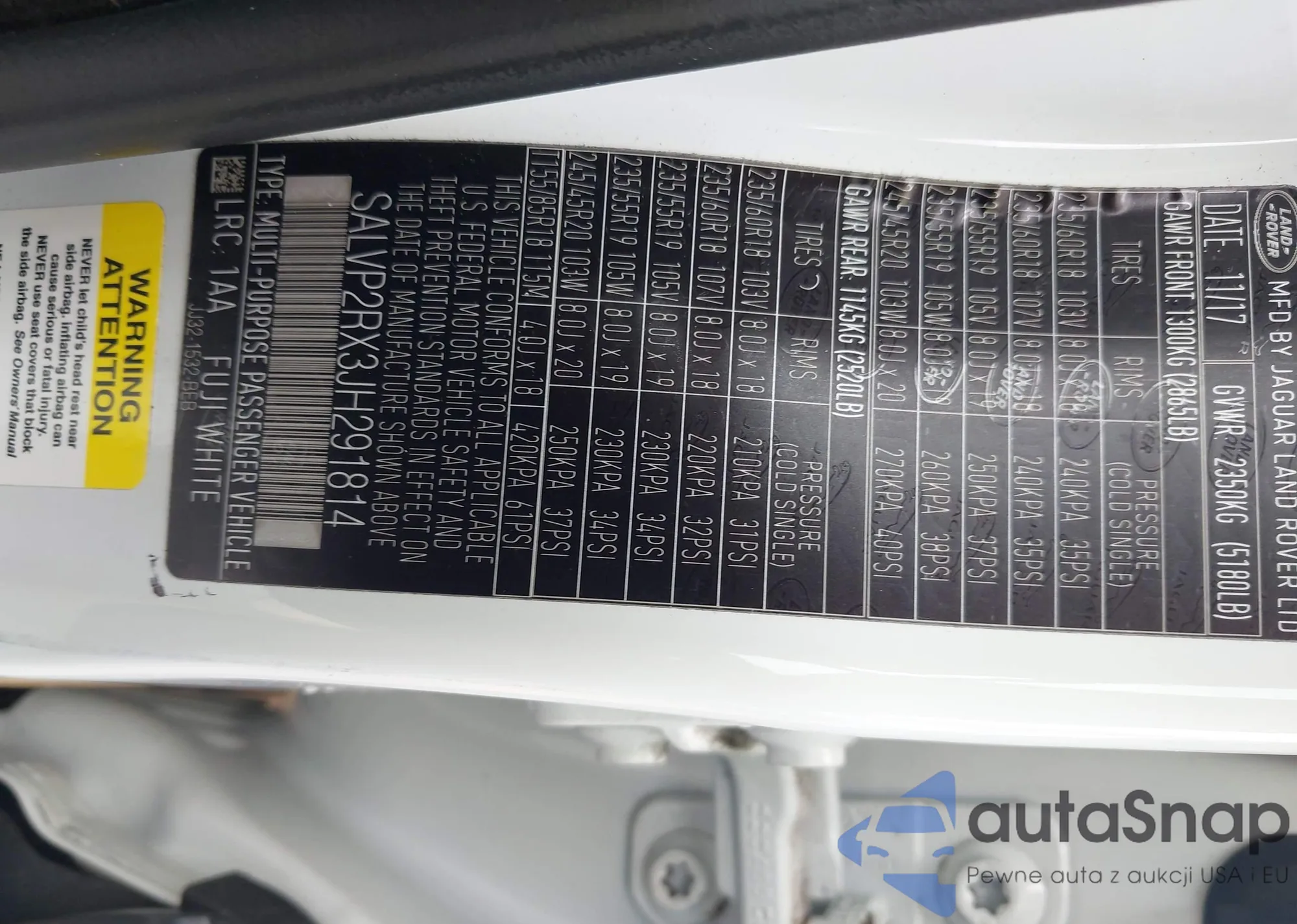 • VIN SALVP2RX3JH291814