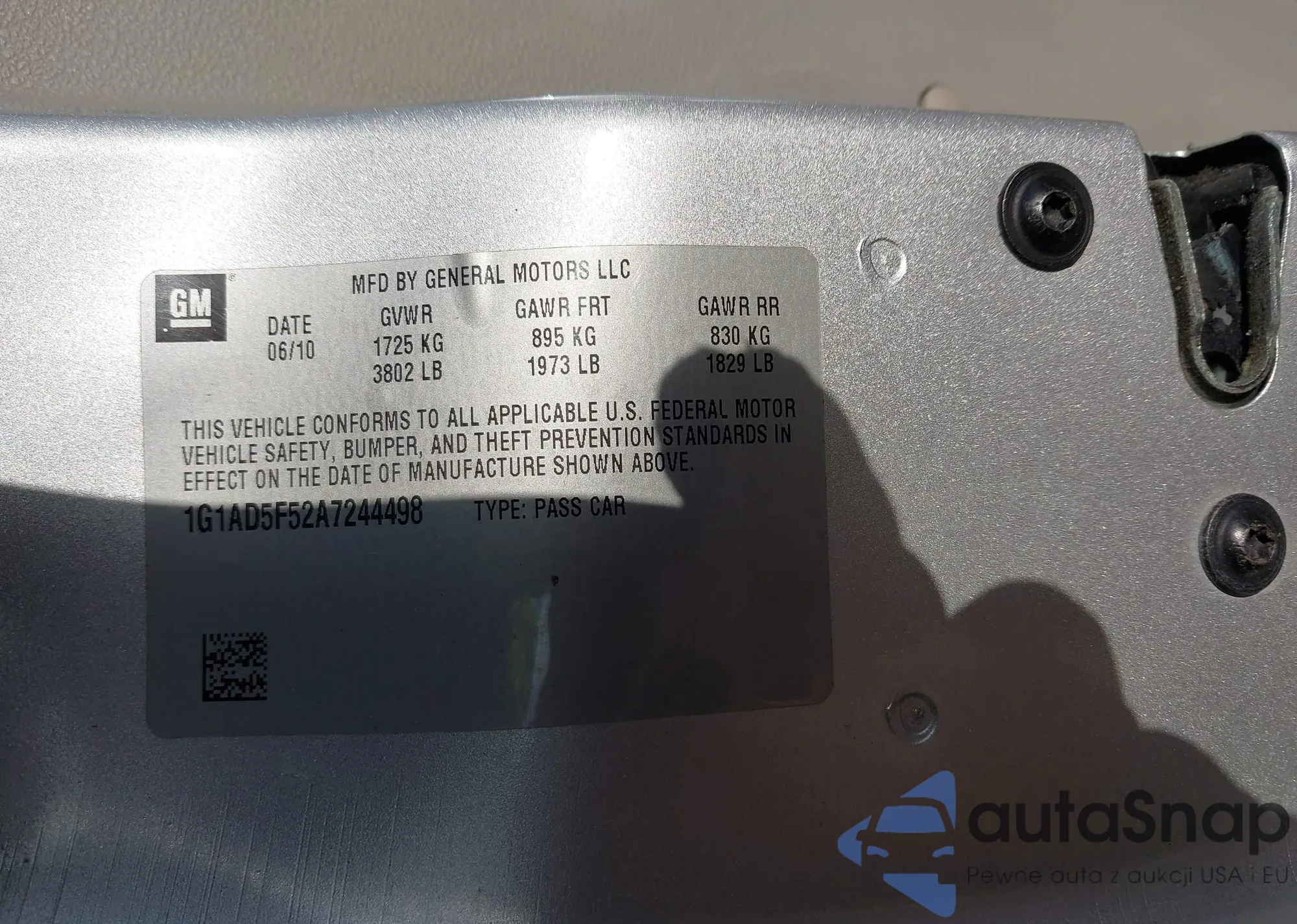 LOT: 43831452 VIN: 1G1AD5F52A7244498
