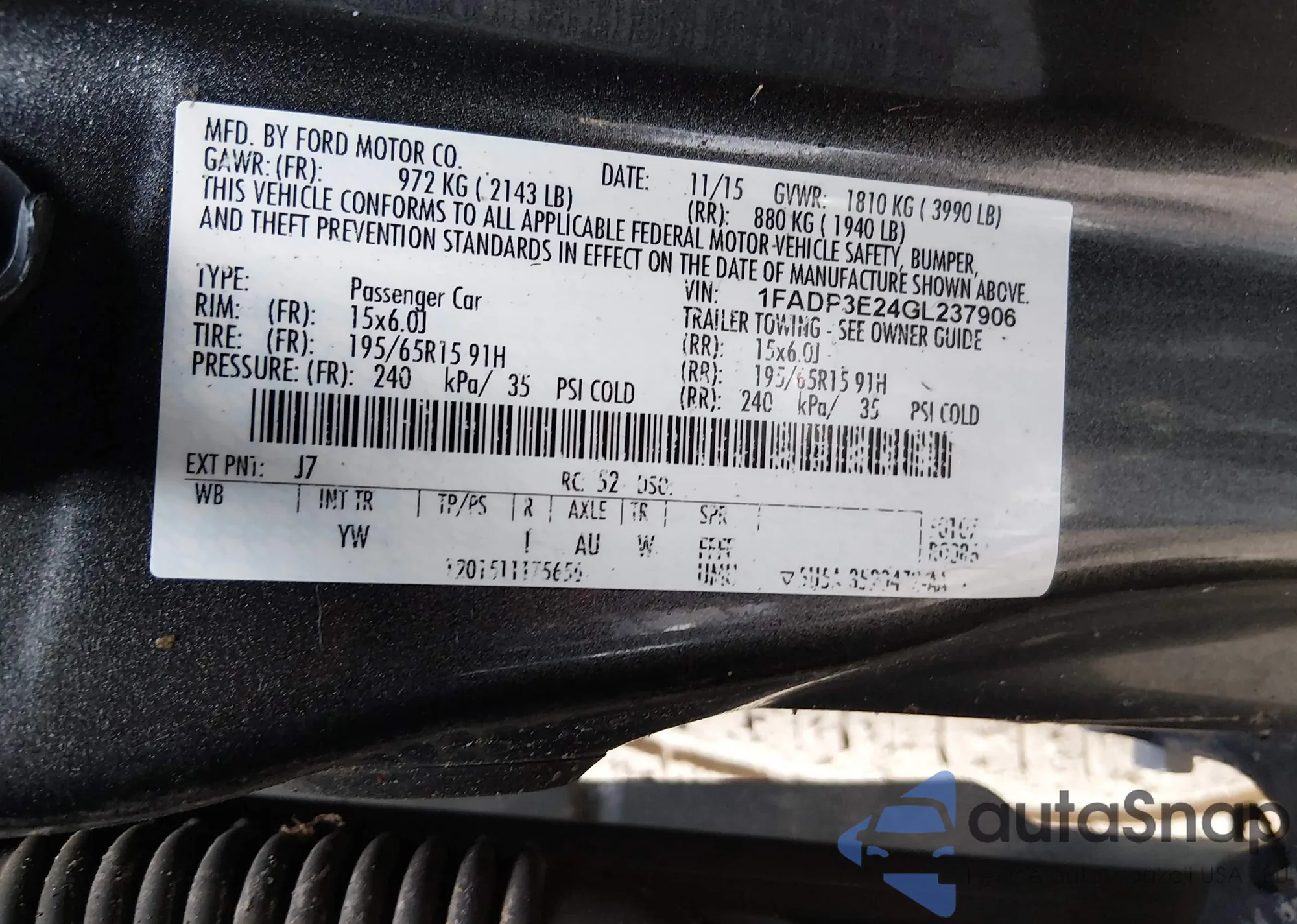 • VIN 1FADP3E24GL237906