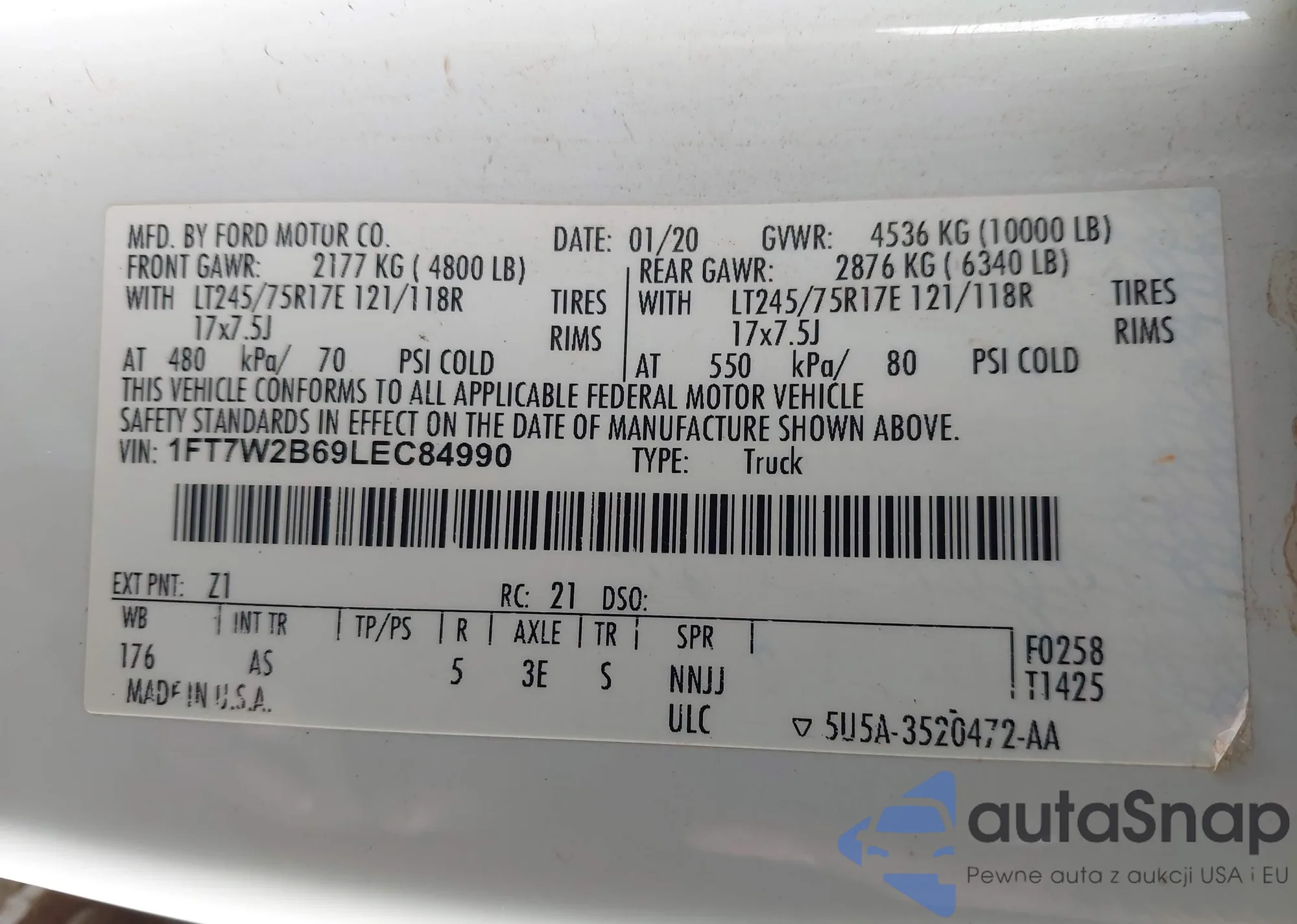• VIN 1FT7W2B69LEC84990