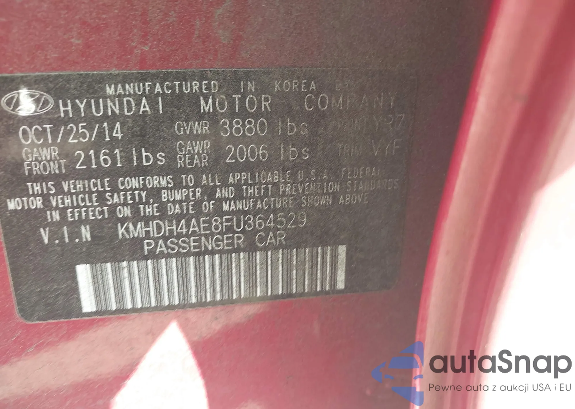 • VIN KMHDH4AE8FU364529