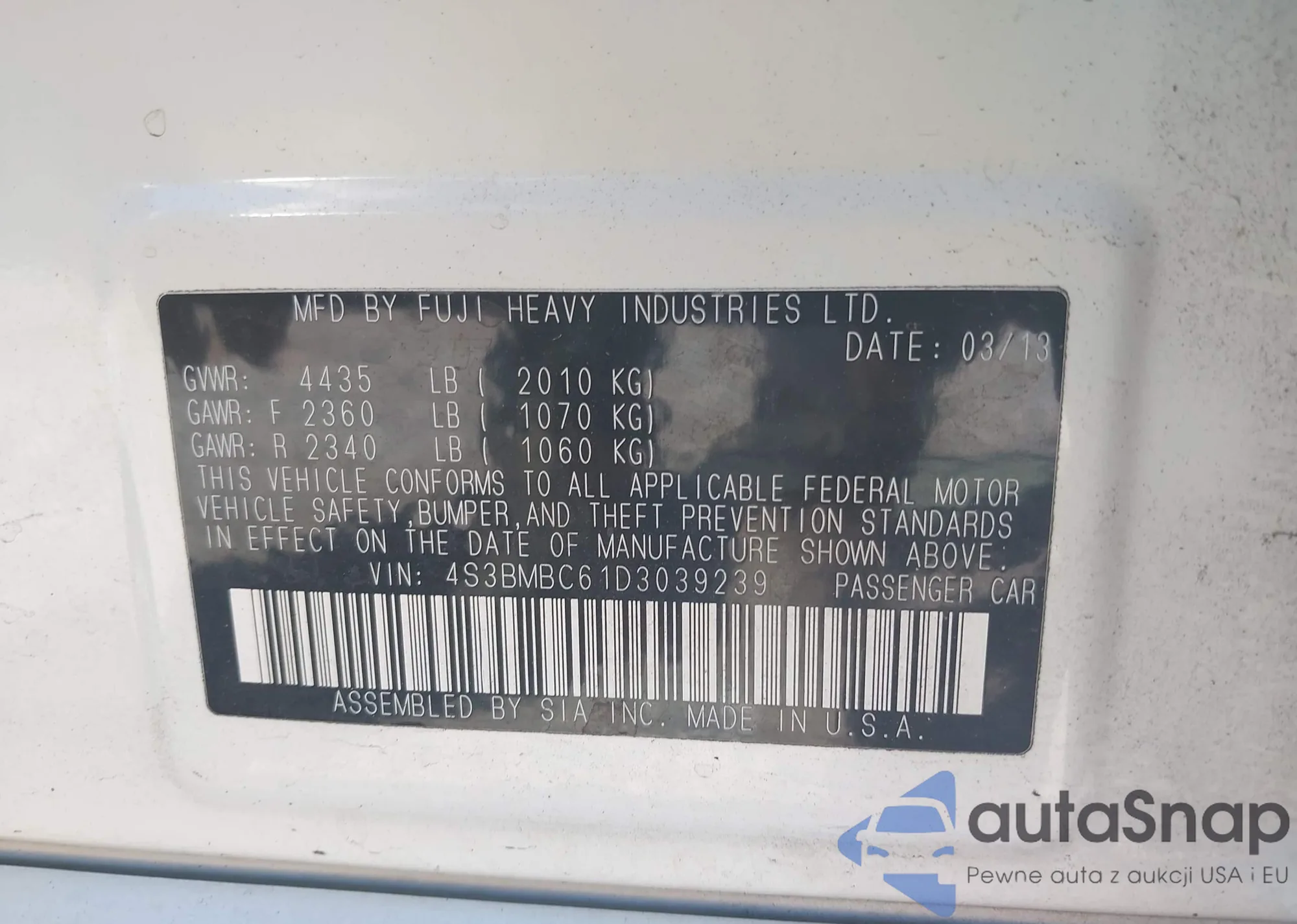 • VIN 4S3BMBC61D3039239