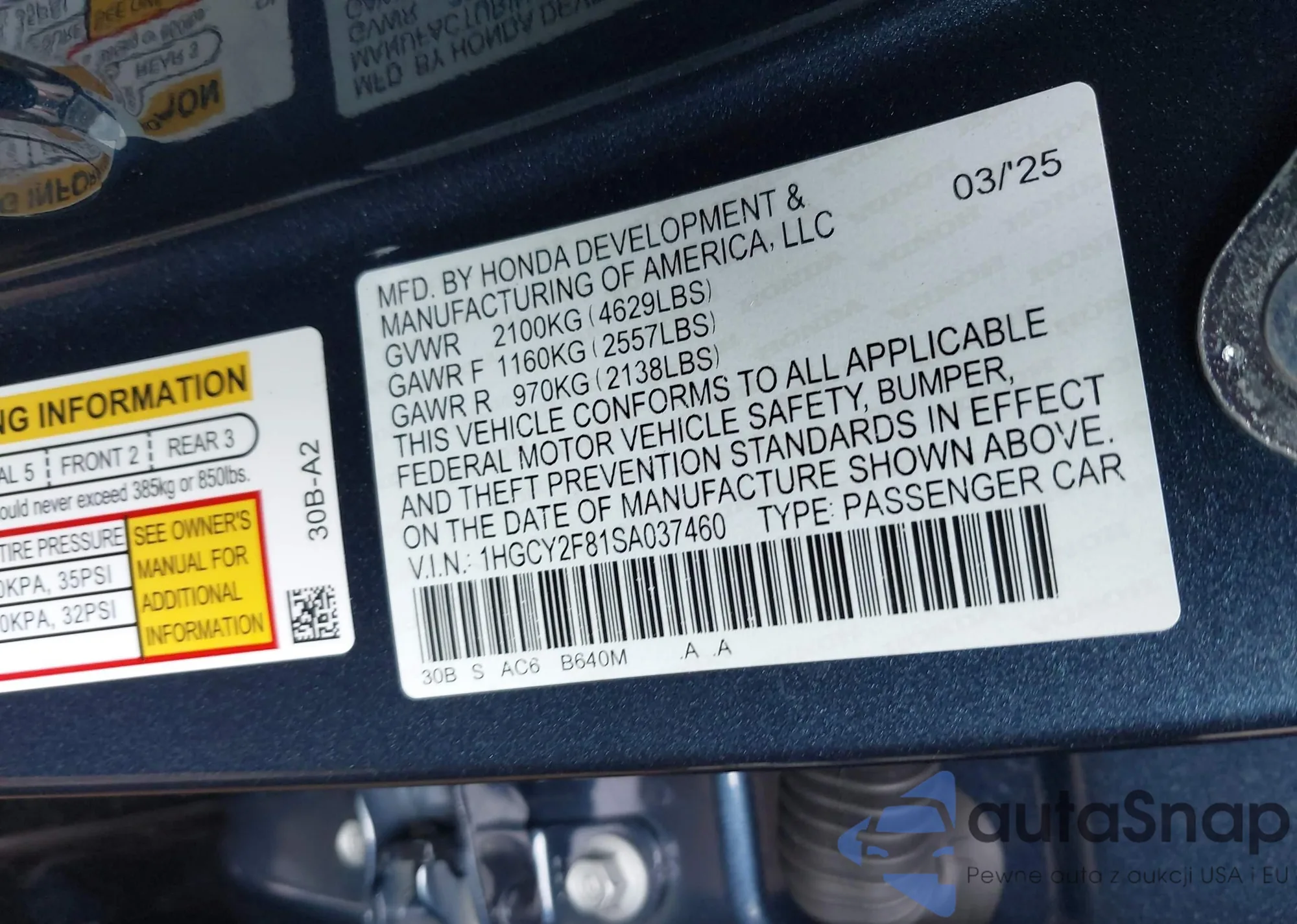 LOT: 43418218 VIN: 19XFB2F52CE001116