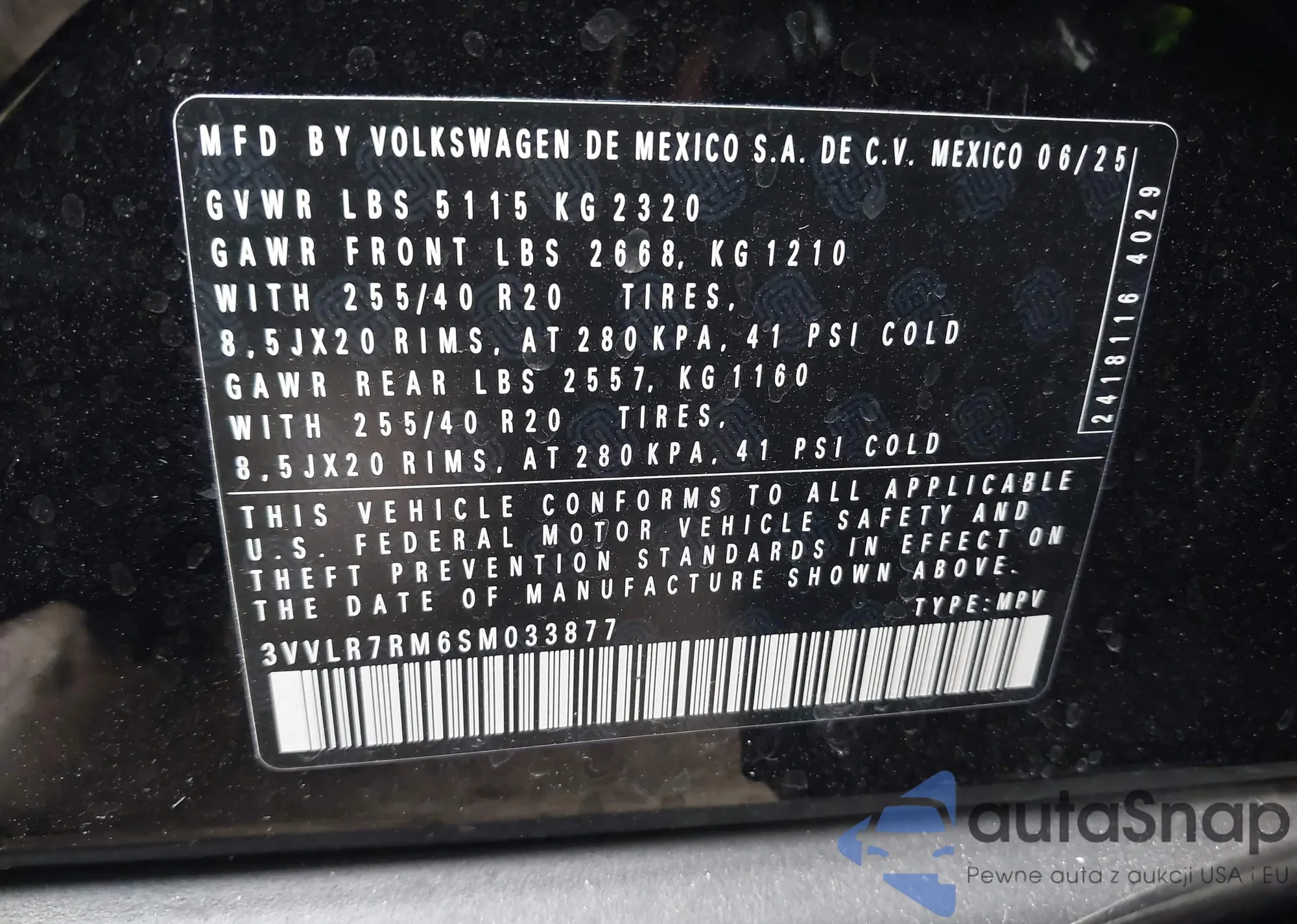 • VIN 3VVLR7RM6SM033877