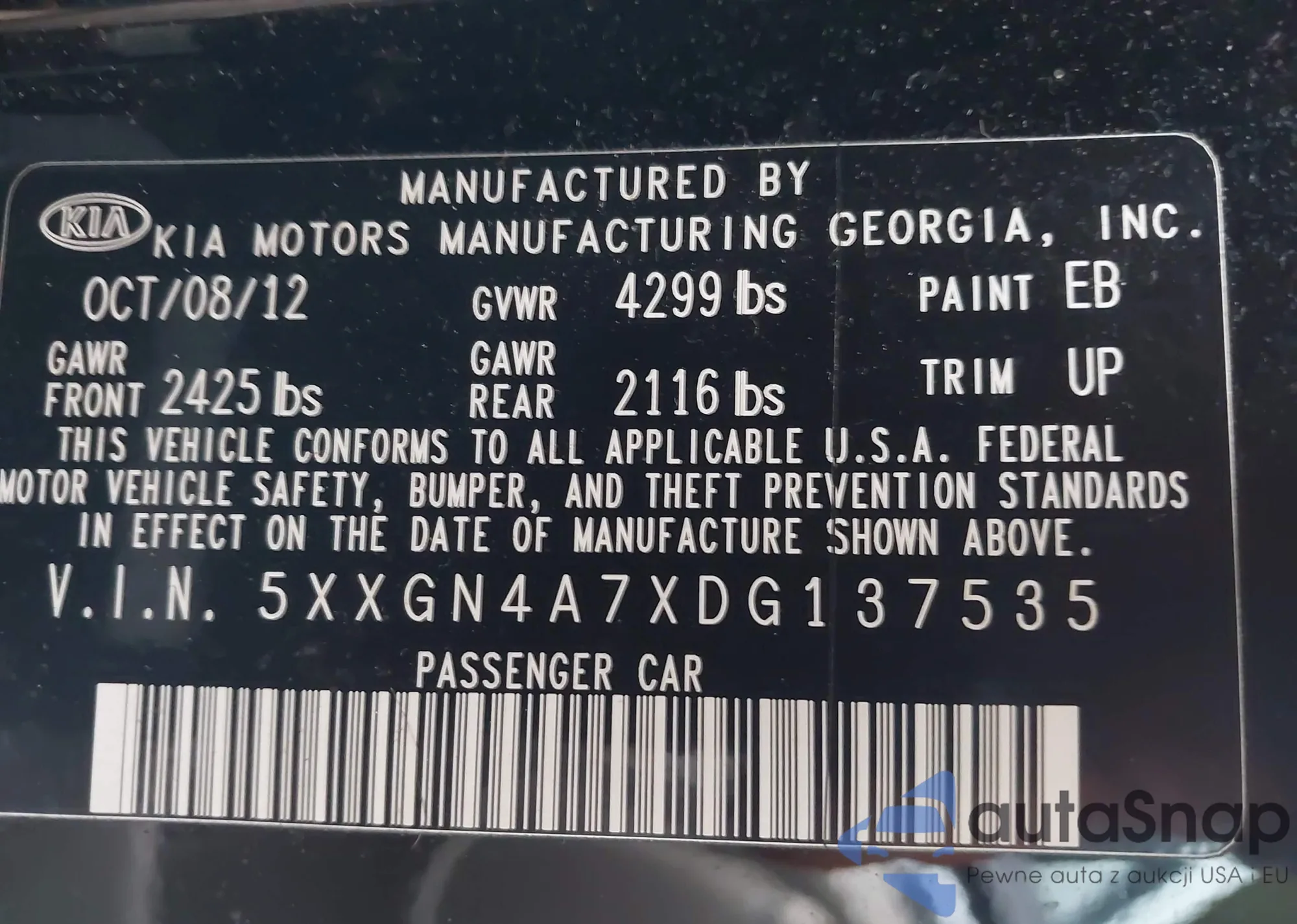 • VIN 5XXGN4A7XDG137535