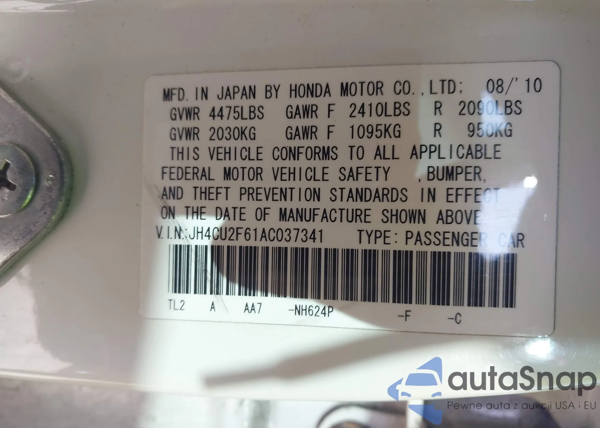• VIN JH4CU2F61AC037341