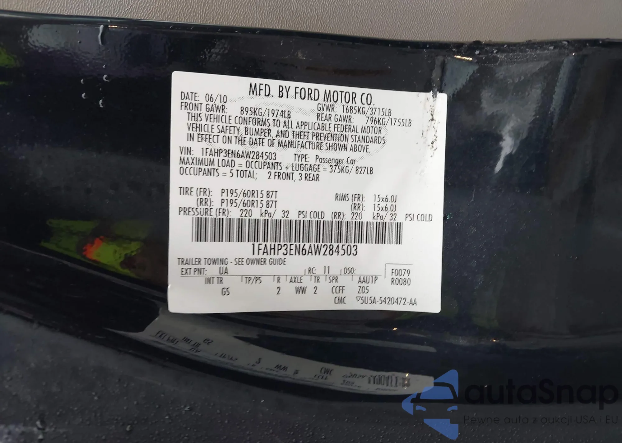• VIN 1FAHP3EN6AW284503
