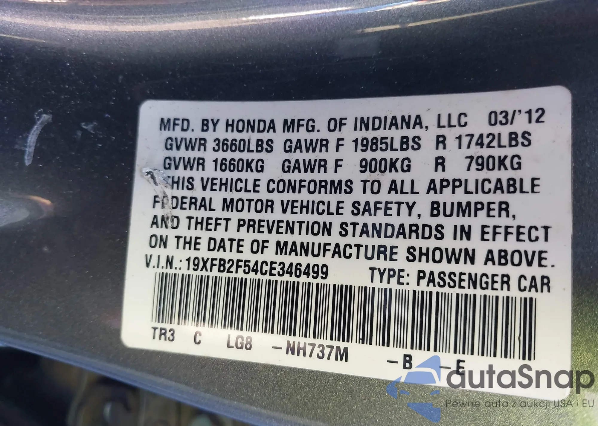• VIN 19XFB2F54CE346499