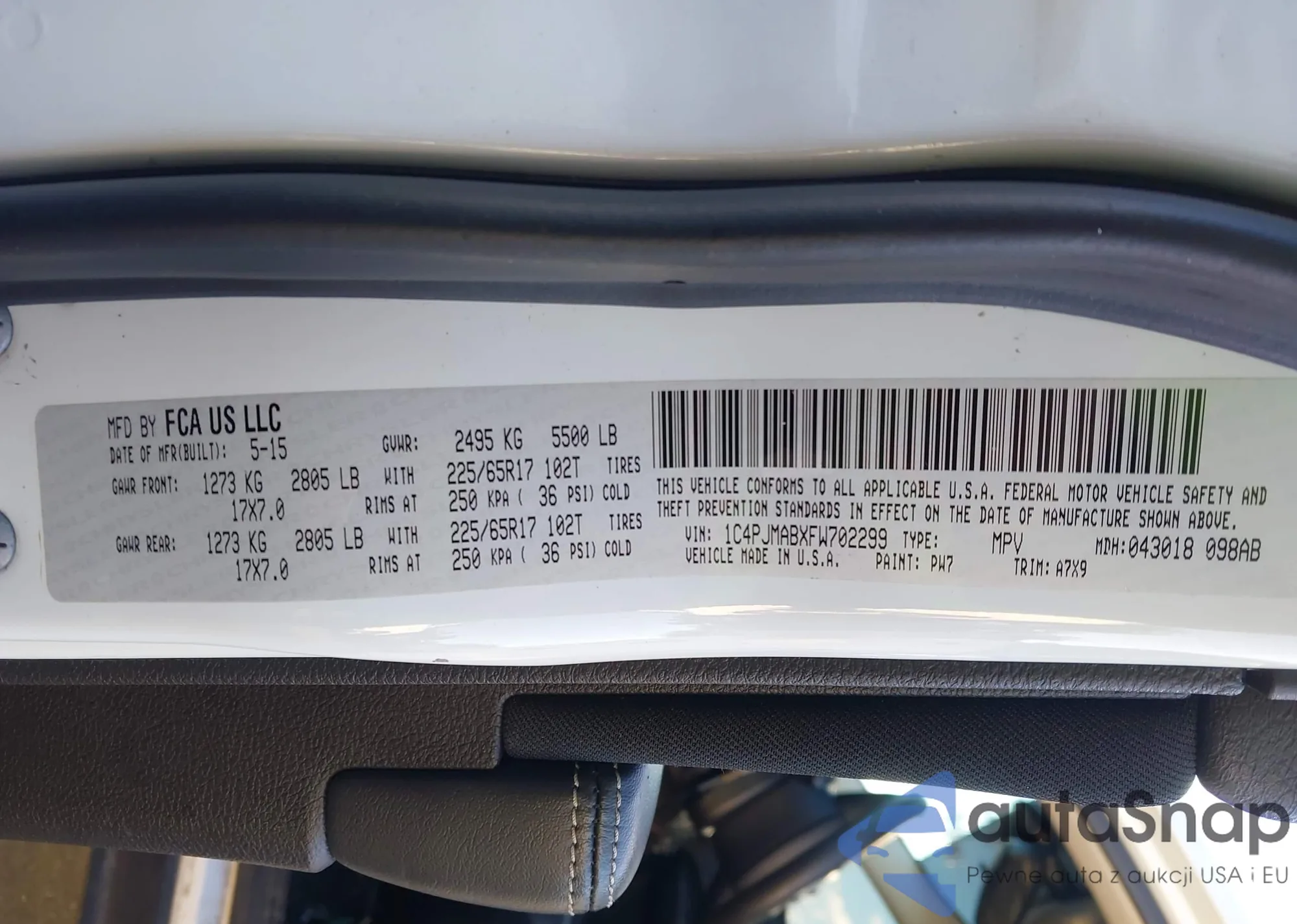 LOT: 43818667 VIN: WAUACGFF4F1017688