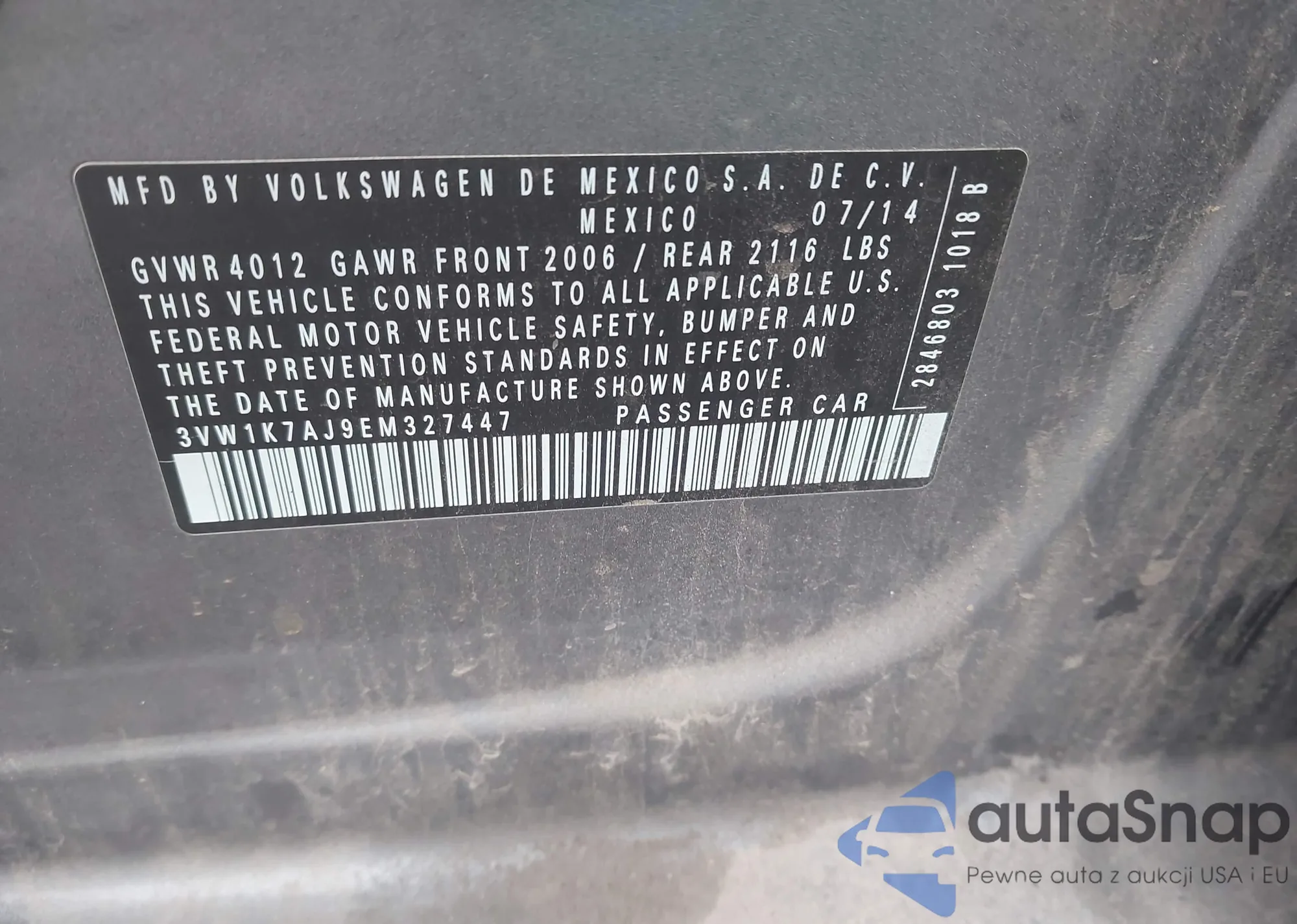 • VIN 3VW1K7AJ9EM327447