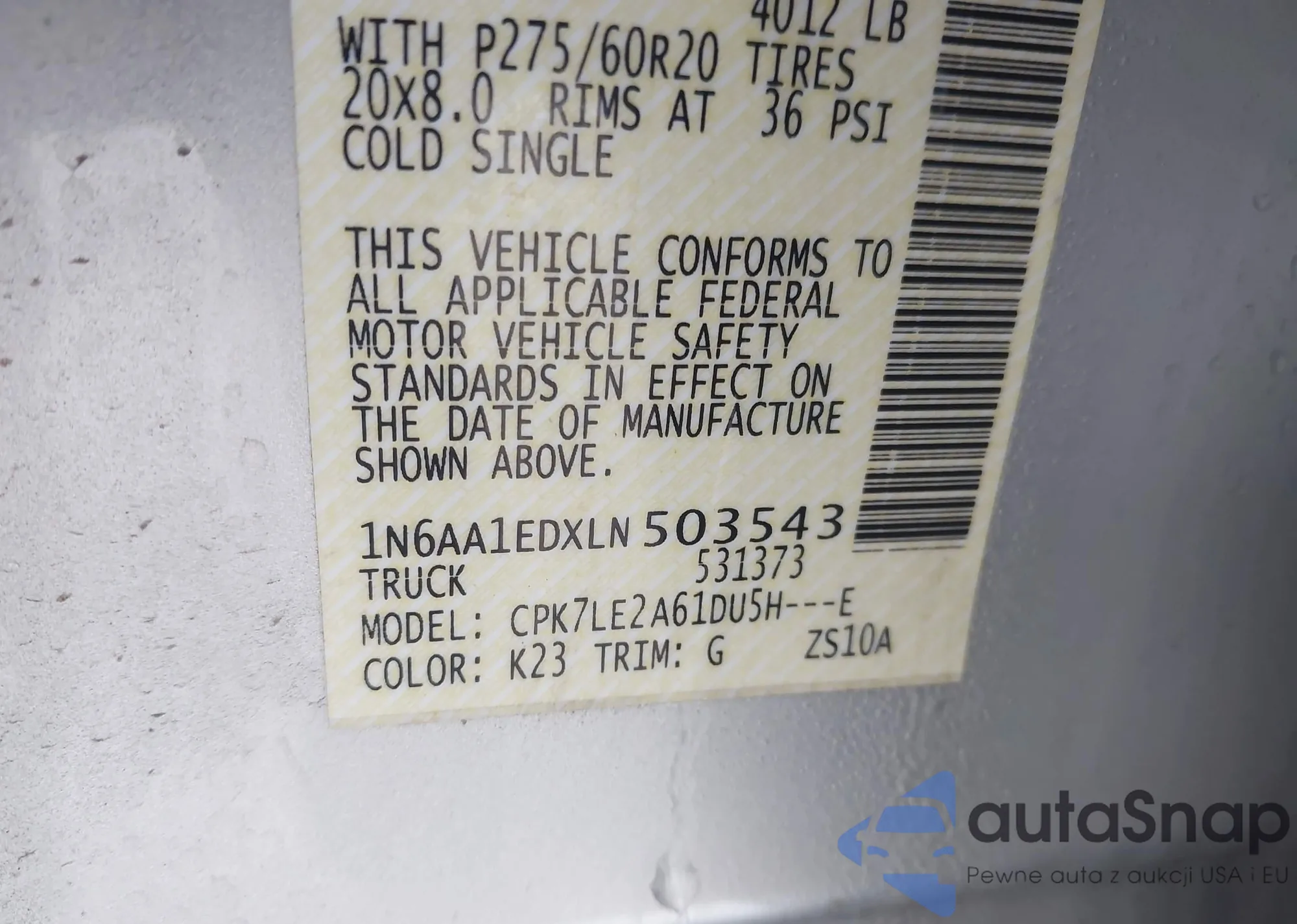 • VIN 1N6AA1EDXLN503543