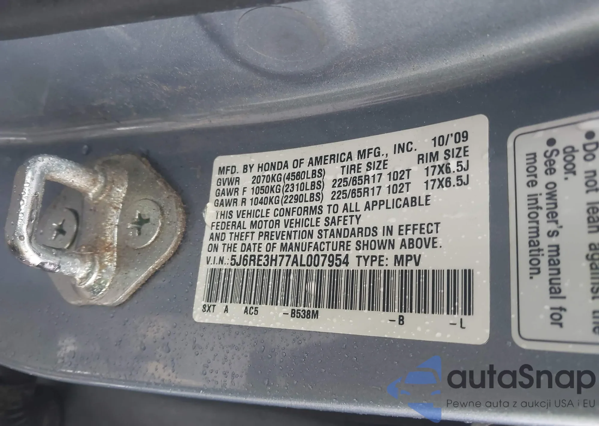 • Damage: Right side