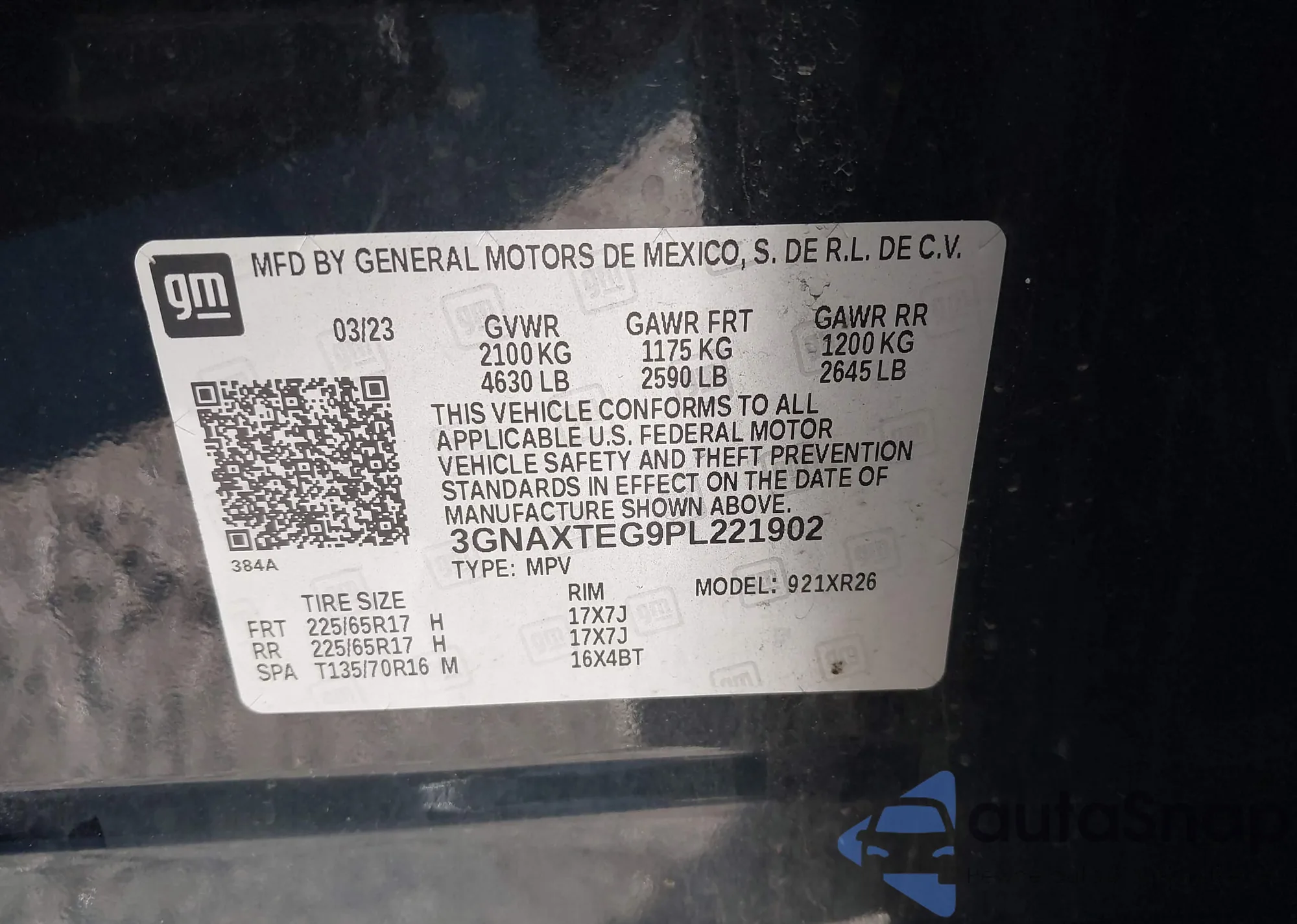 LOT: 43901135 VIN: 3GNAXTEG9PL221902