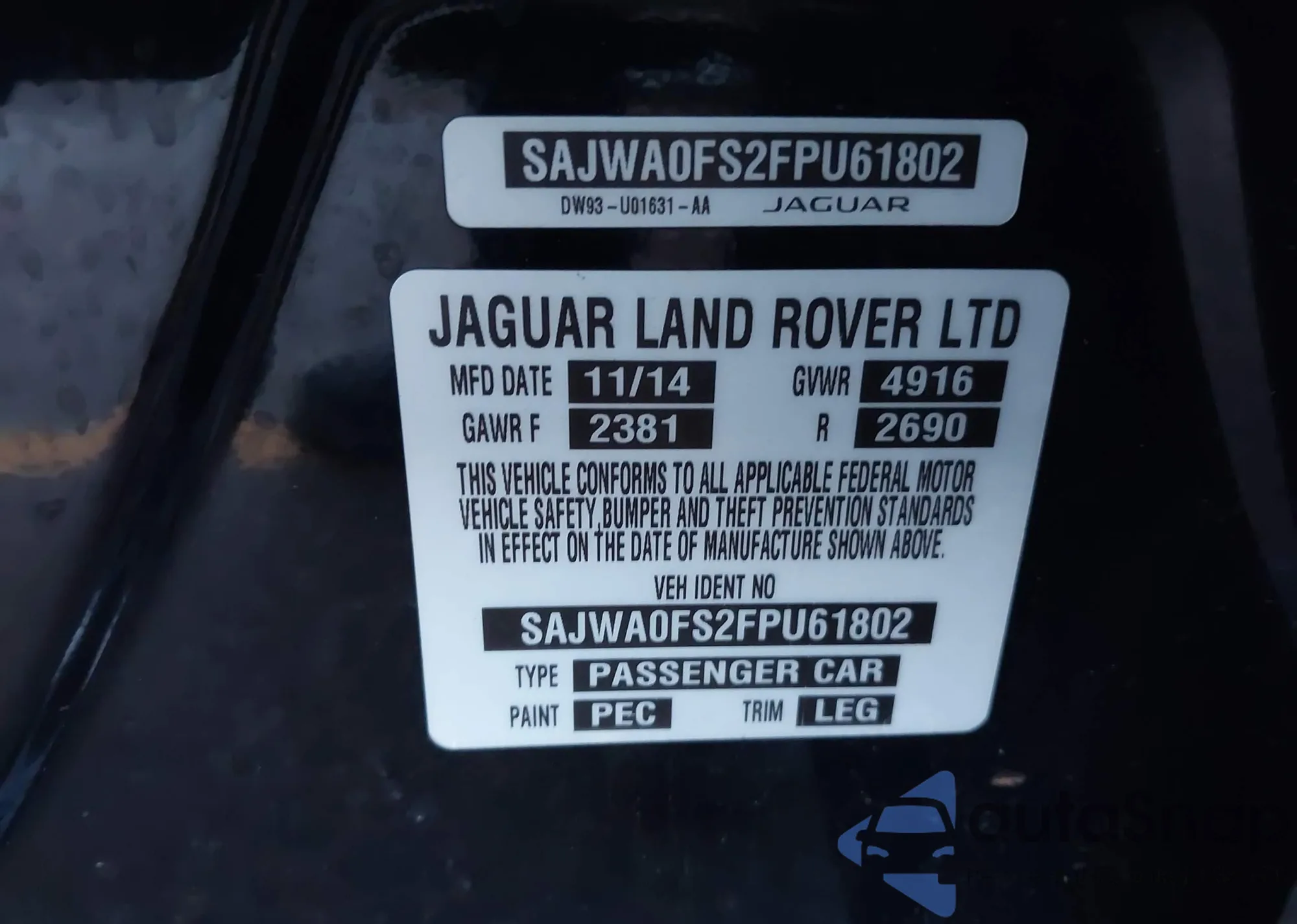 • VIN 1G6AA5RA7F0117788