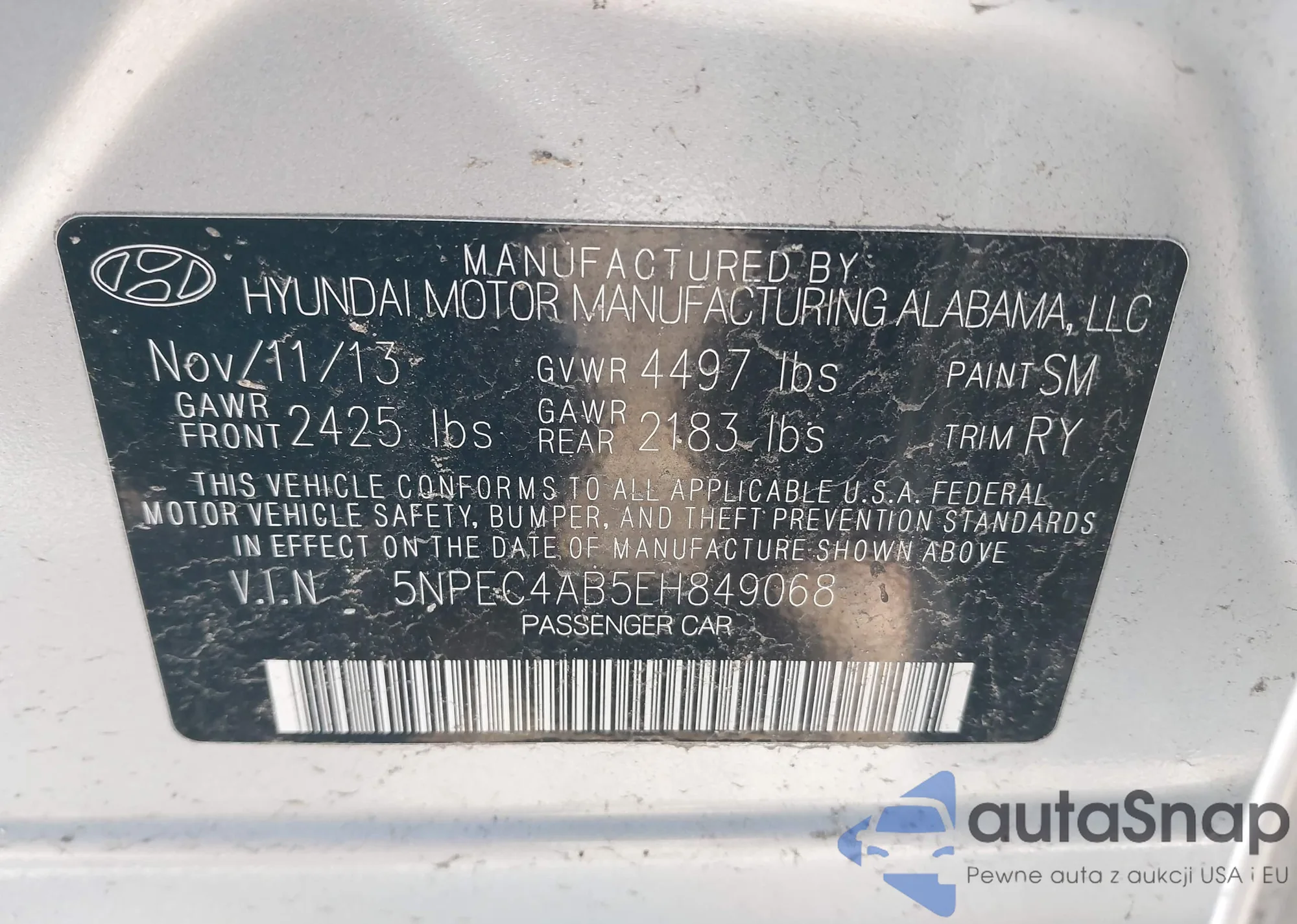 • VIN 5NPEC4AB5EH849068